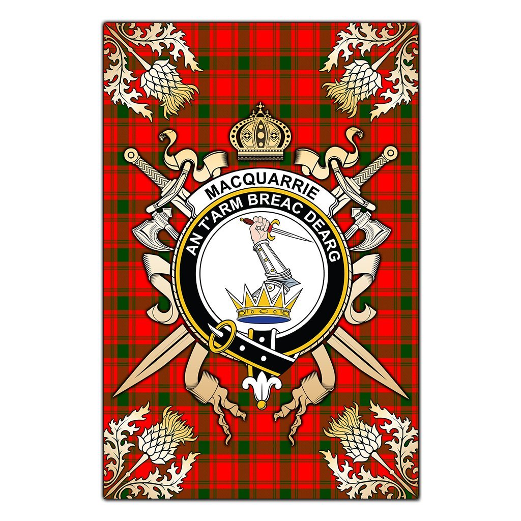 MacQuarrie Modern Tartan Crest Black Garden Flag - Gold Thistle Style