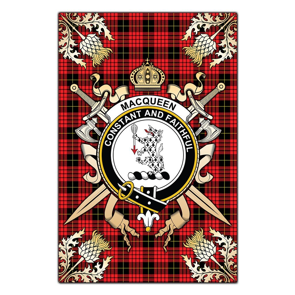 MacQueen Modern Tartan Crest Black Garden Flag - Gold Thistle Style