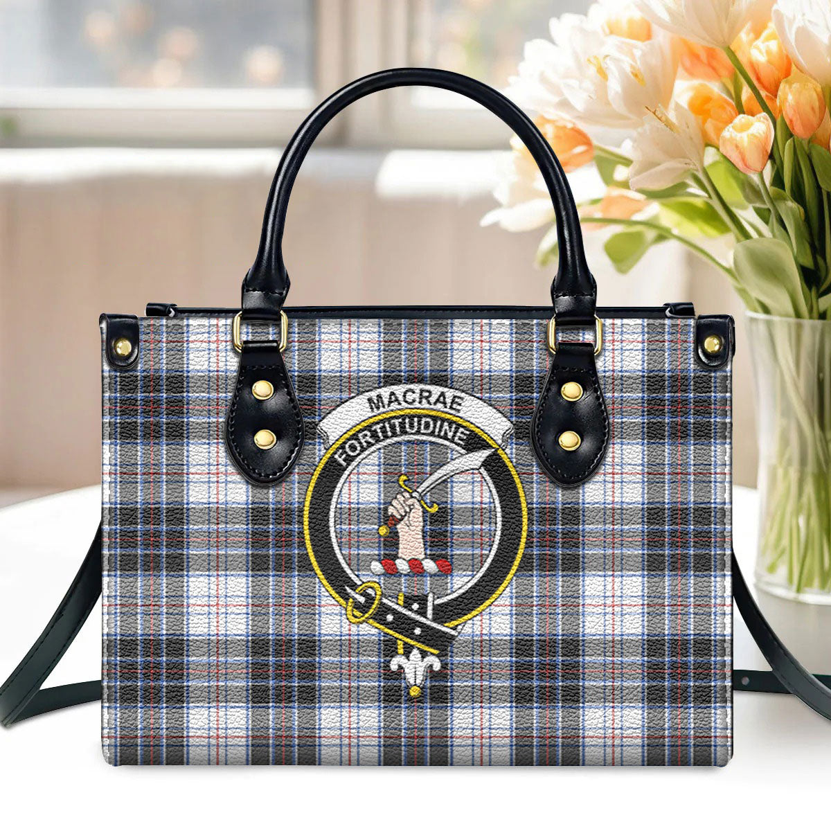 MacRae Dress Modern Tartan Crest Leather Handbag