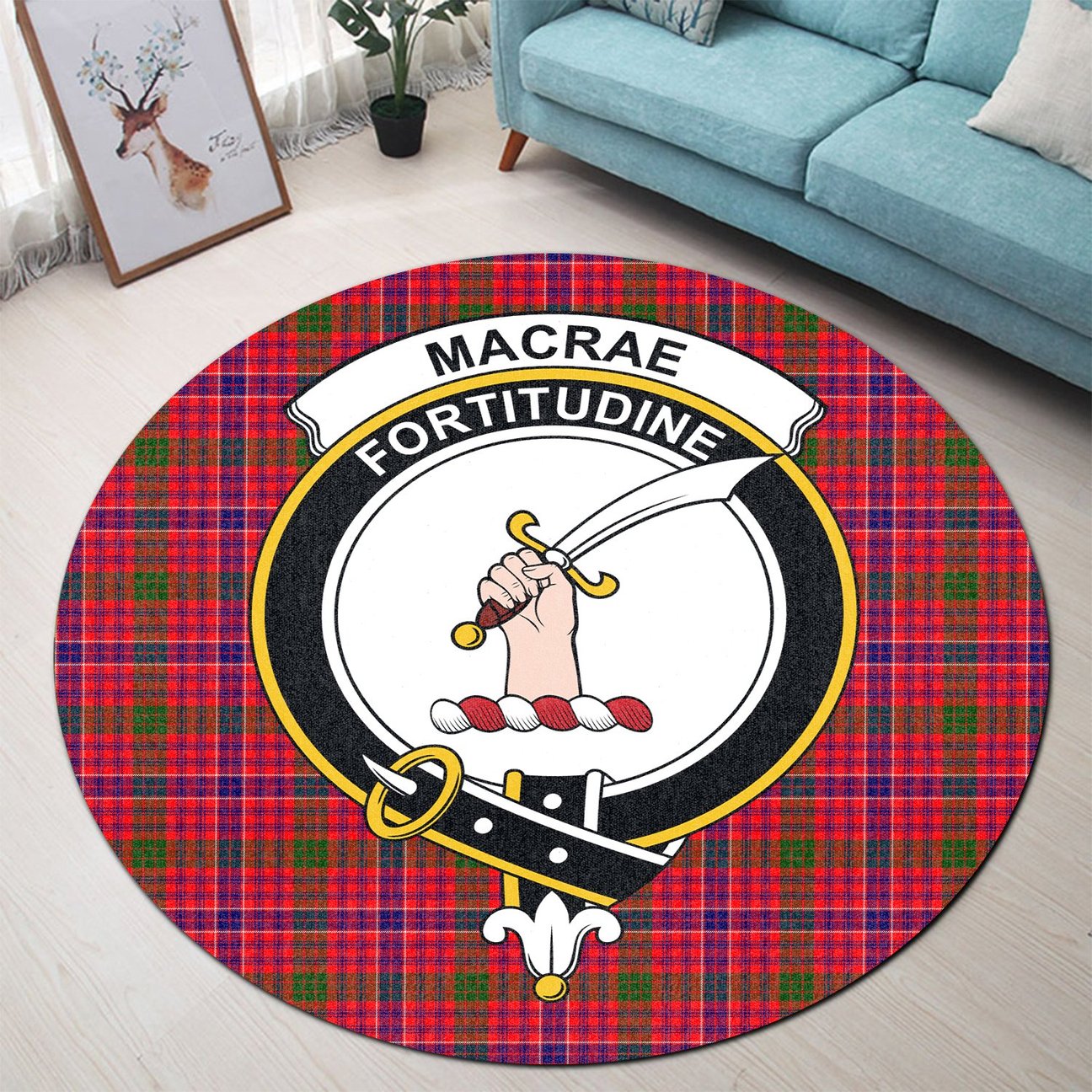 MacRae Modern Tartan Crest Round Rug