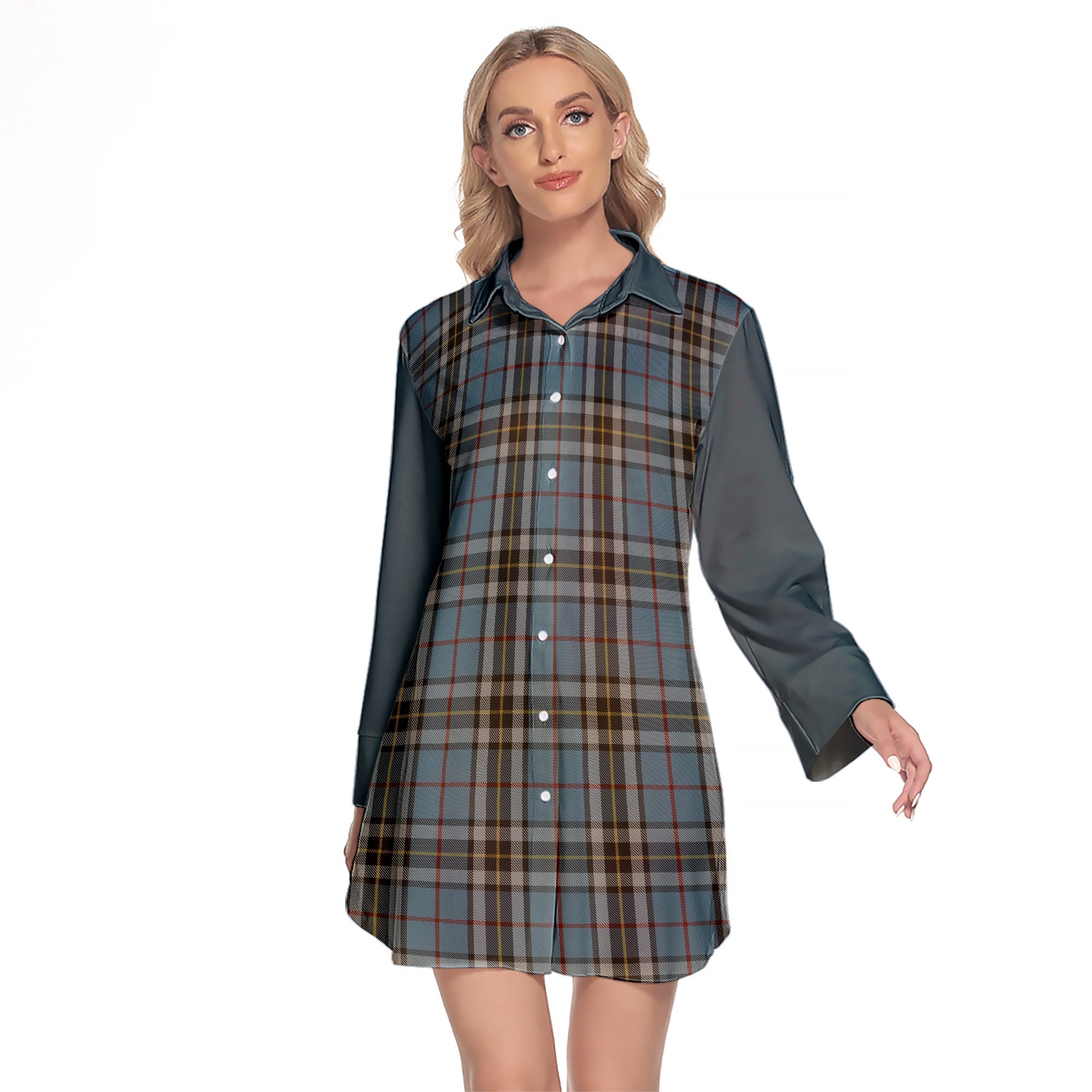 MacTavish Dress Tartan Women's Lapel Shirt Dress With Long Sleeve