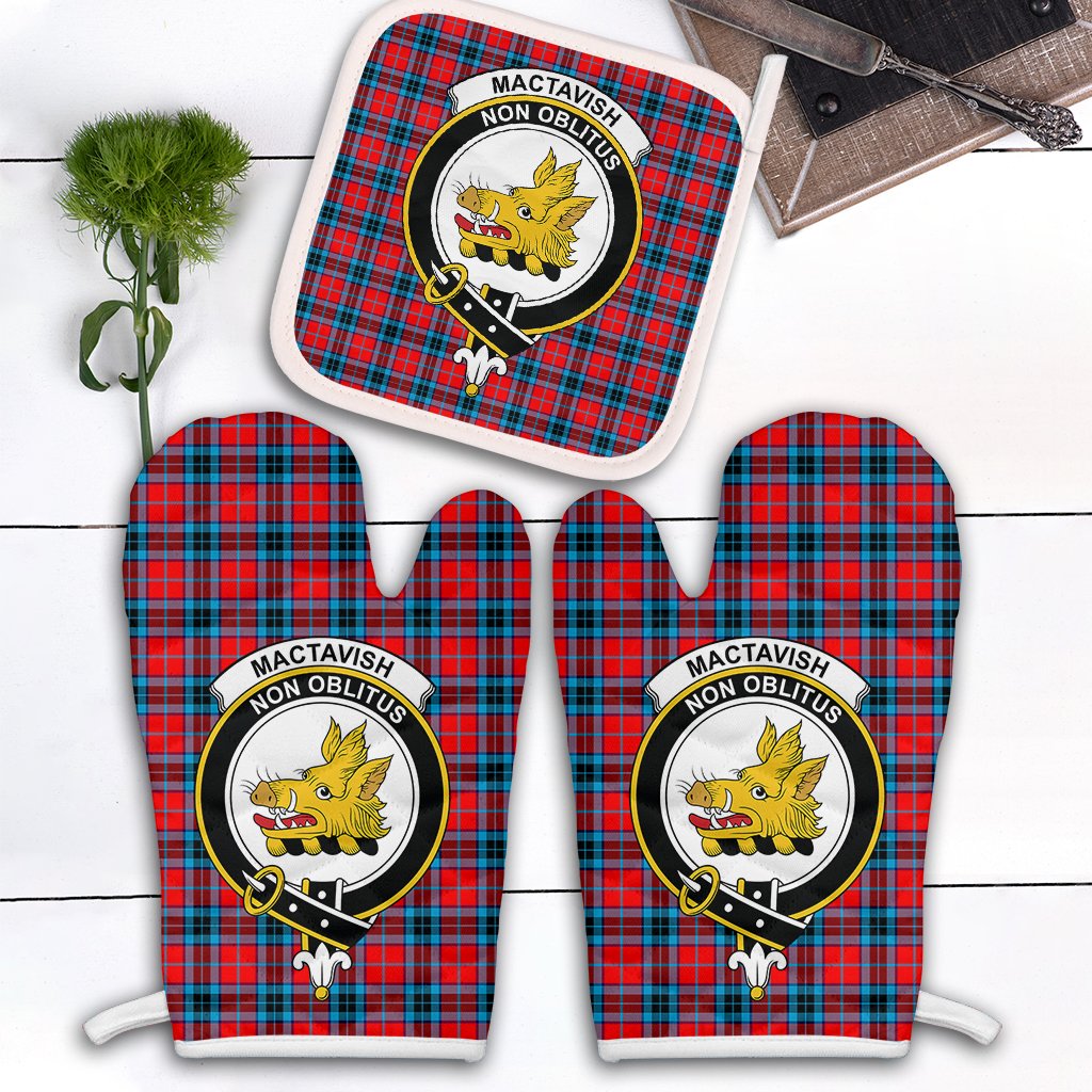 MacTavish Modern Tartan Crest Oven Mitt And Pot Holder (2 Oven Mitts + 1 Pot Holder)