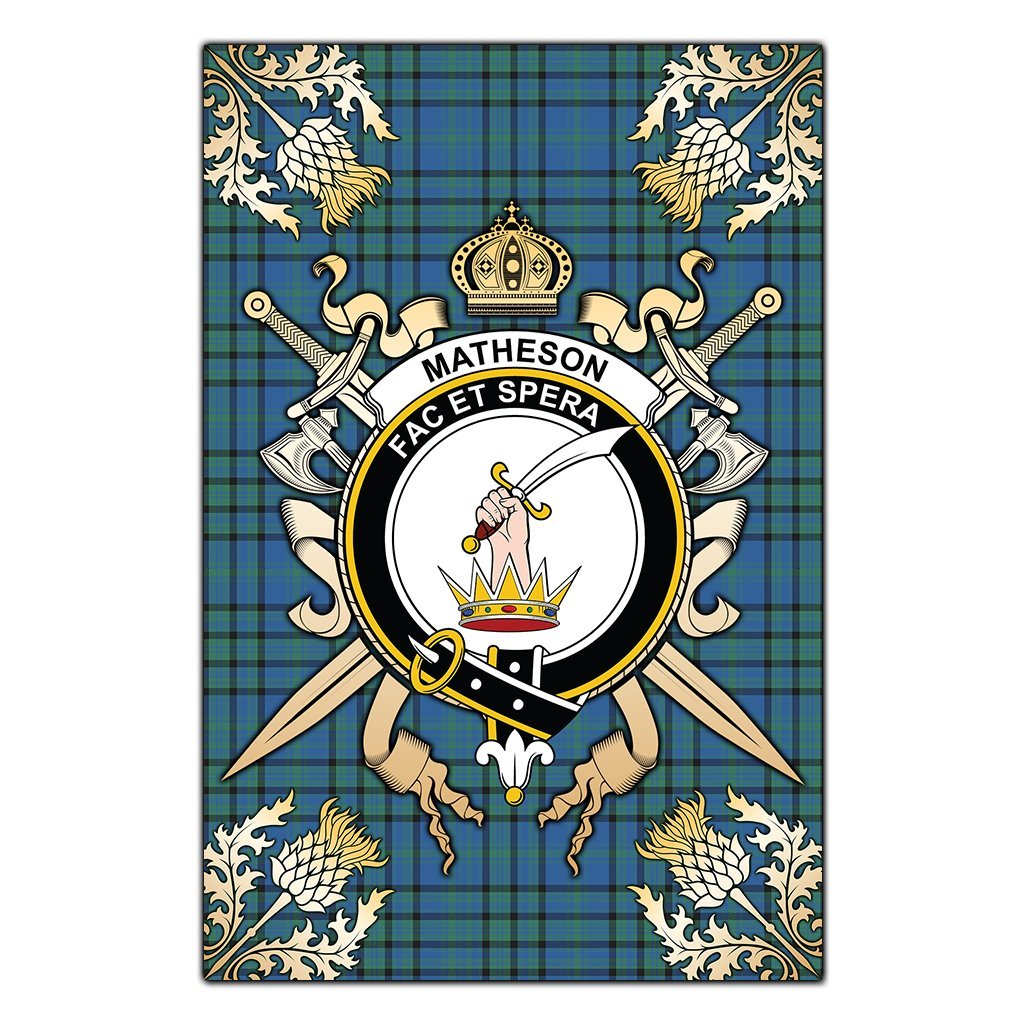 Matheson Hunting Ancient Tartan Crest Black Garden Flag - Gold Thistle Style