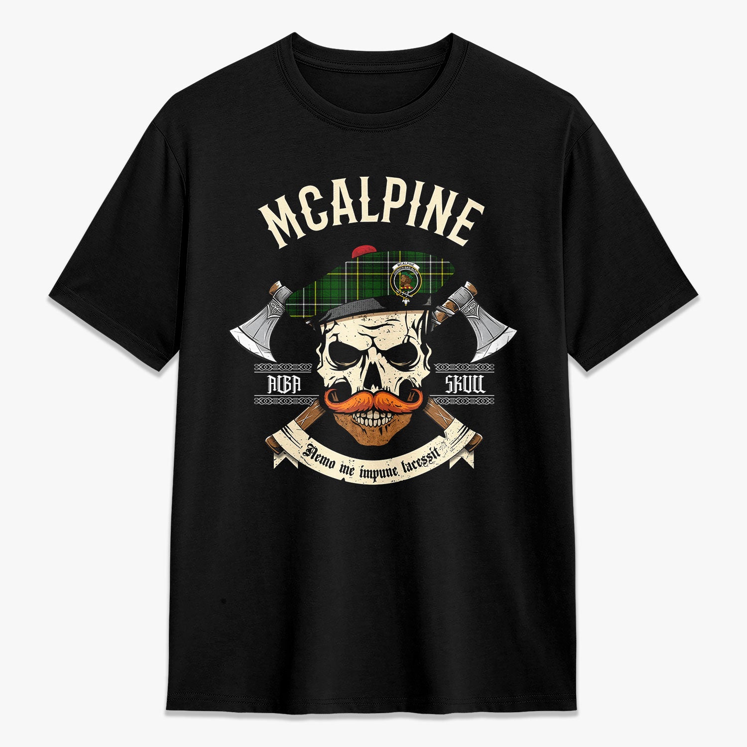 McAlpine Modern Tartan Crest 2D T-shirt - Alba Skull Style,