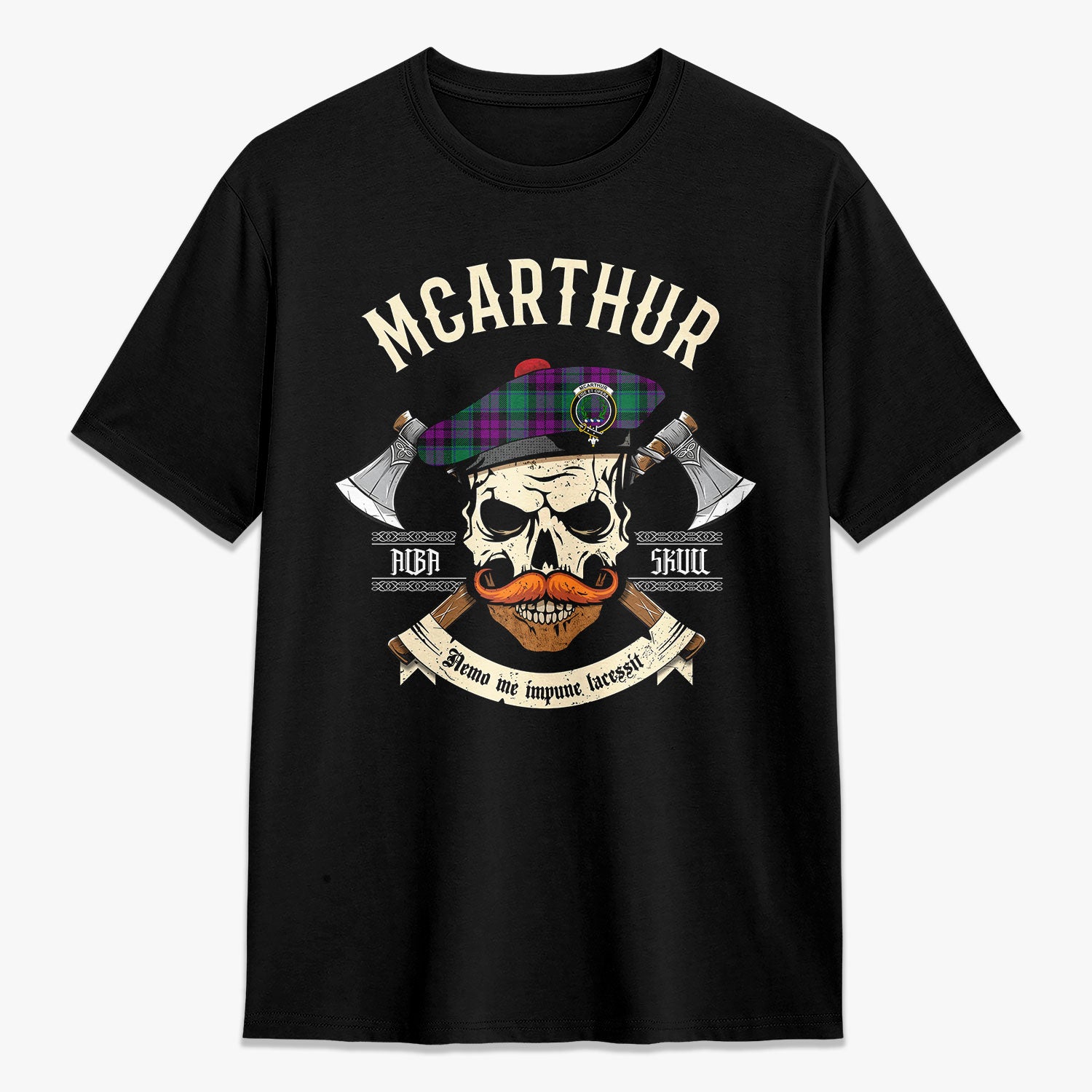 McArthur - Milton Tartan Crest 2D T-shirt - Alba Skull Style,