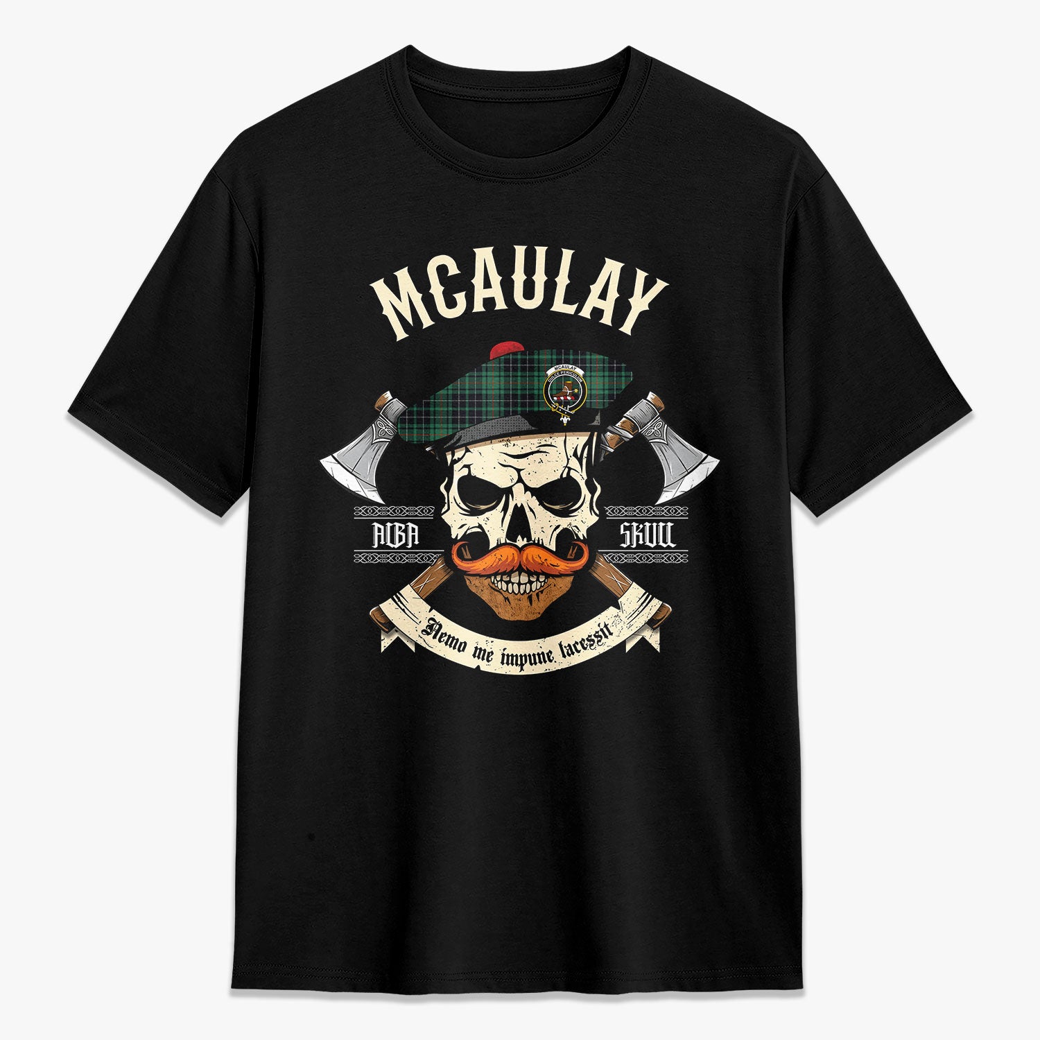 McAulay Hunting Ancient Tartan Crest 2D T-shirt - Alba Skull Style,