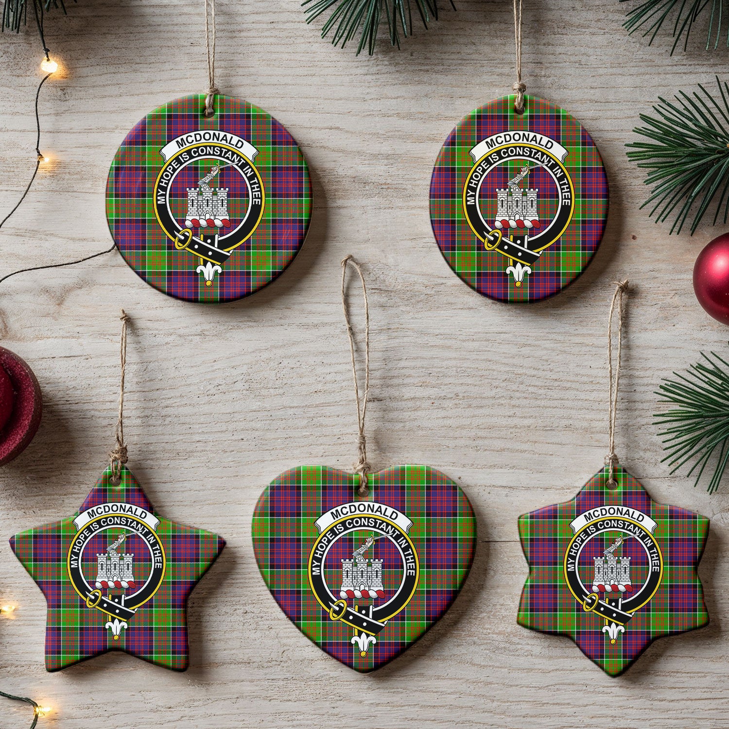 McDonald (Clan Ranald) Tartan Crest Christmas Ceramic Ornament