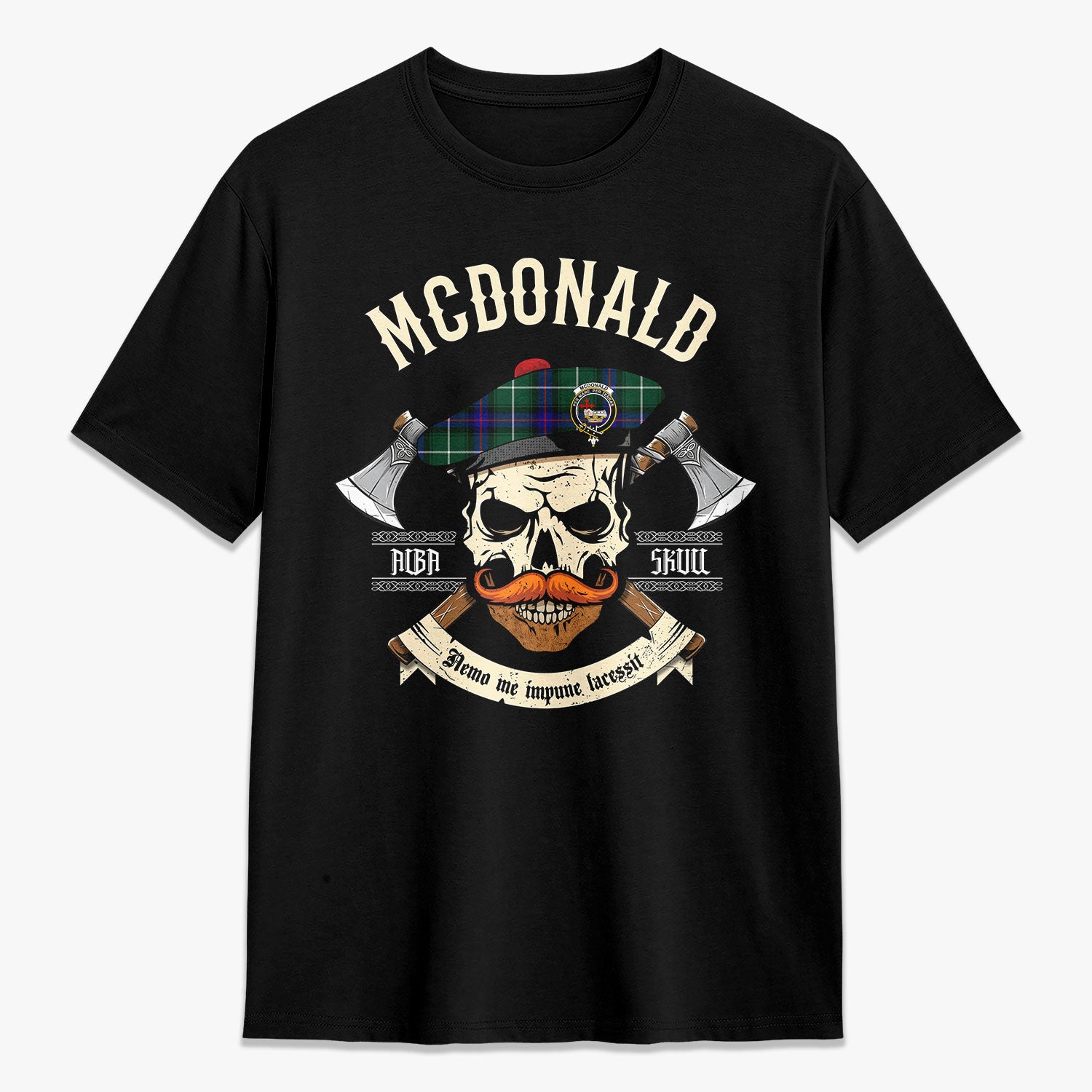 McDonald of the Isles Hunting Modern Tartan Crest 2D T-shirt - Alba Skull Style