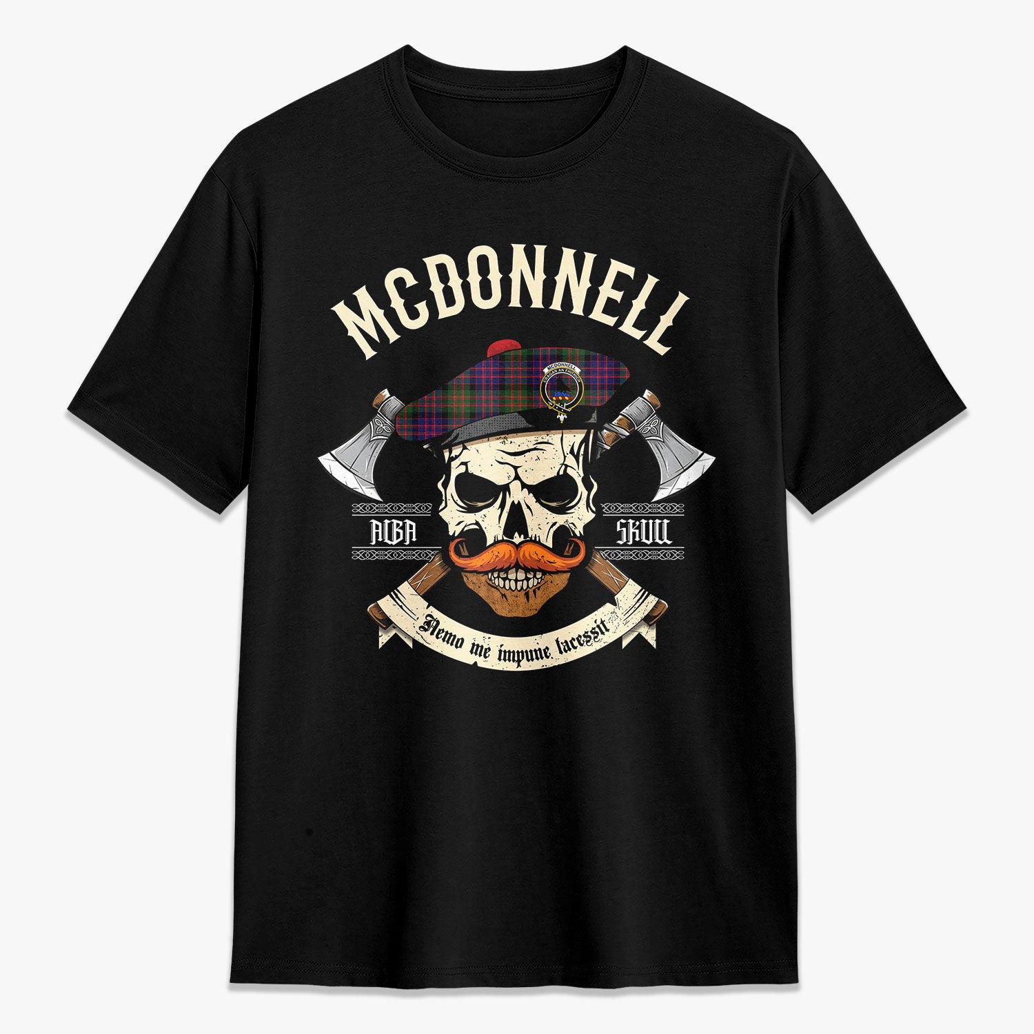 McDonnell of Glengarry Ancient Tartan Crest 2D T-shirt - Alba Skull Style,