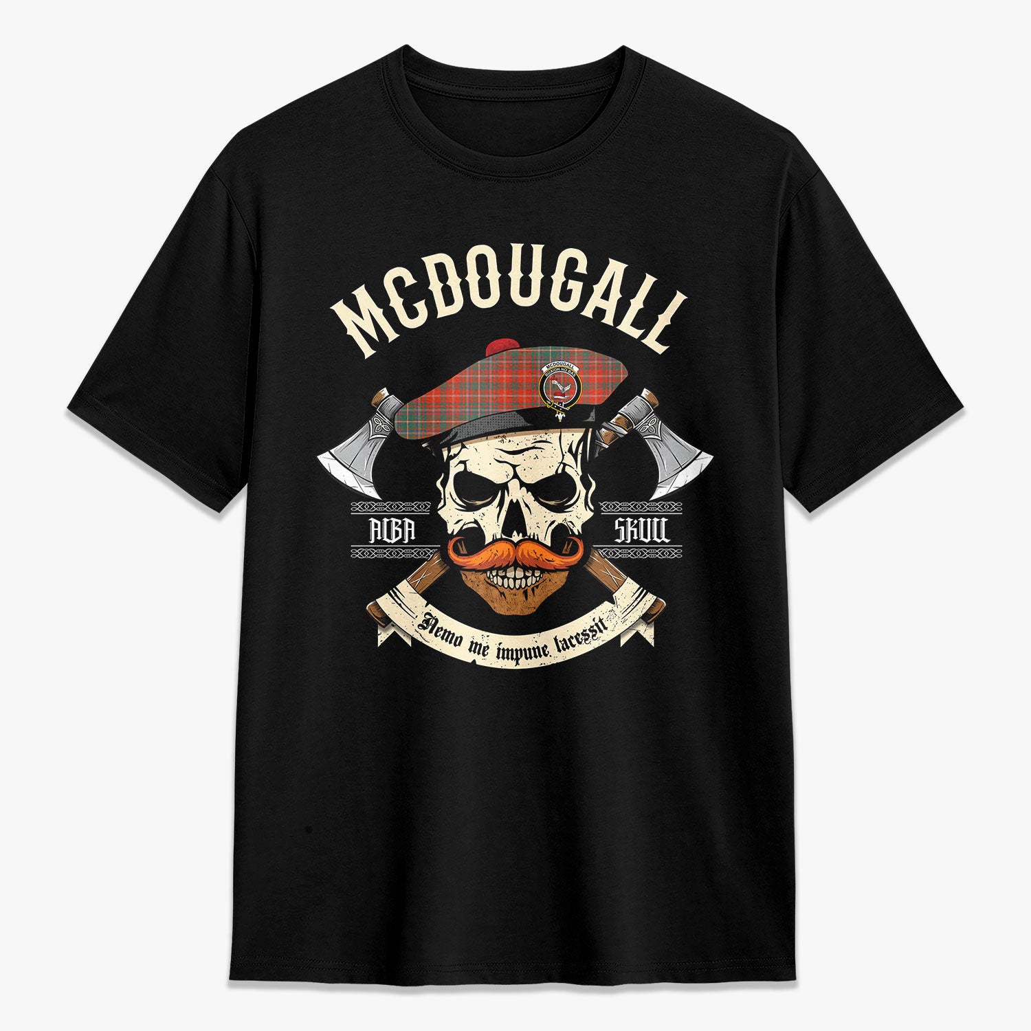 McDougall Ancient Tartan Crest 2D T-shirt - Alba Skull Style,