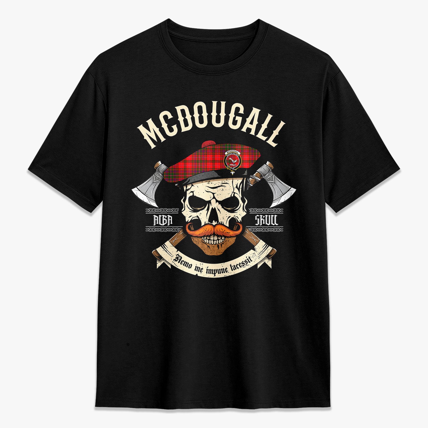 McDougall Modern Tartan Crest 2D T-shirt - Alba Skull Style,