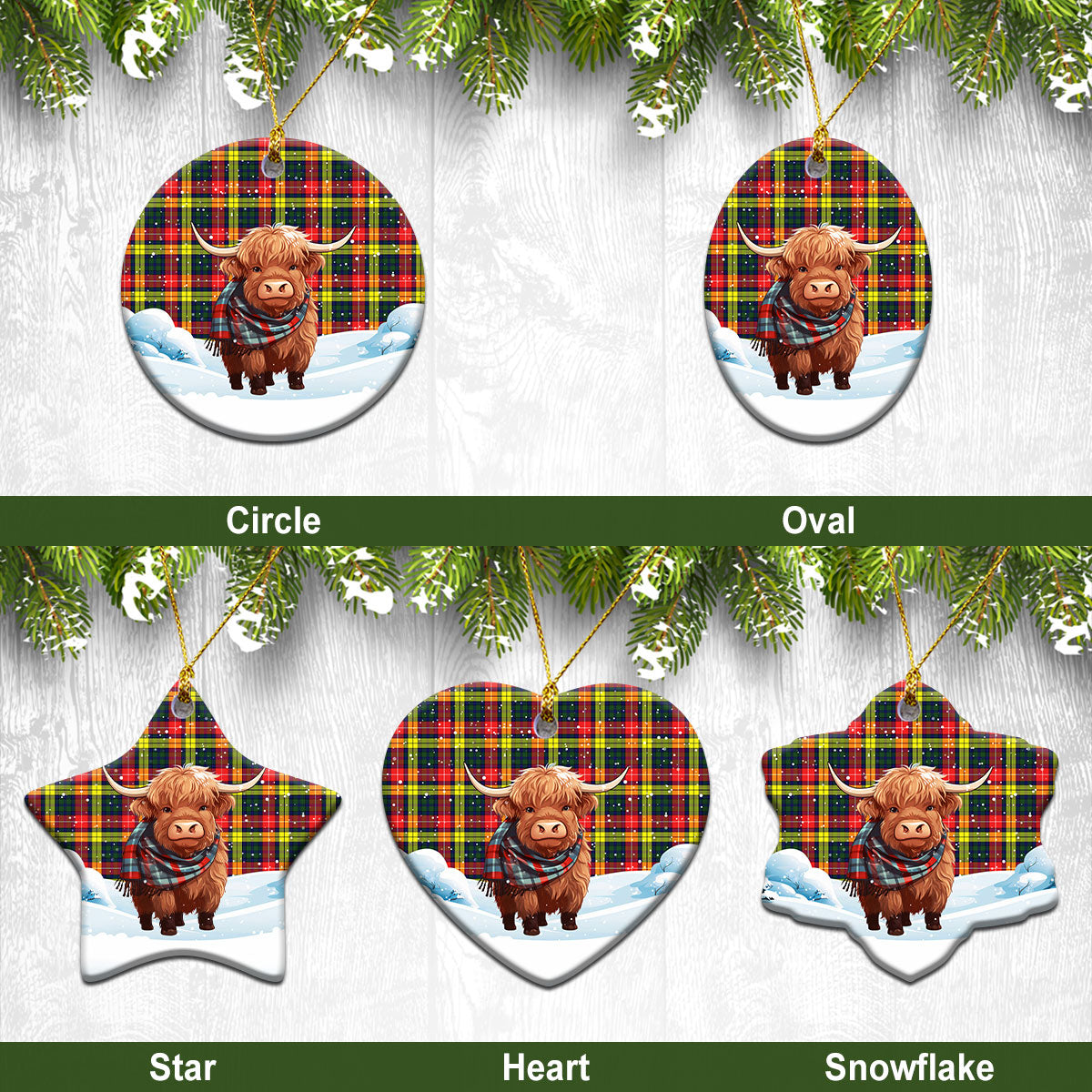 McIndoe Tartan Christmas Ceramic Ornament - Highland Cows Snow Style