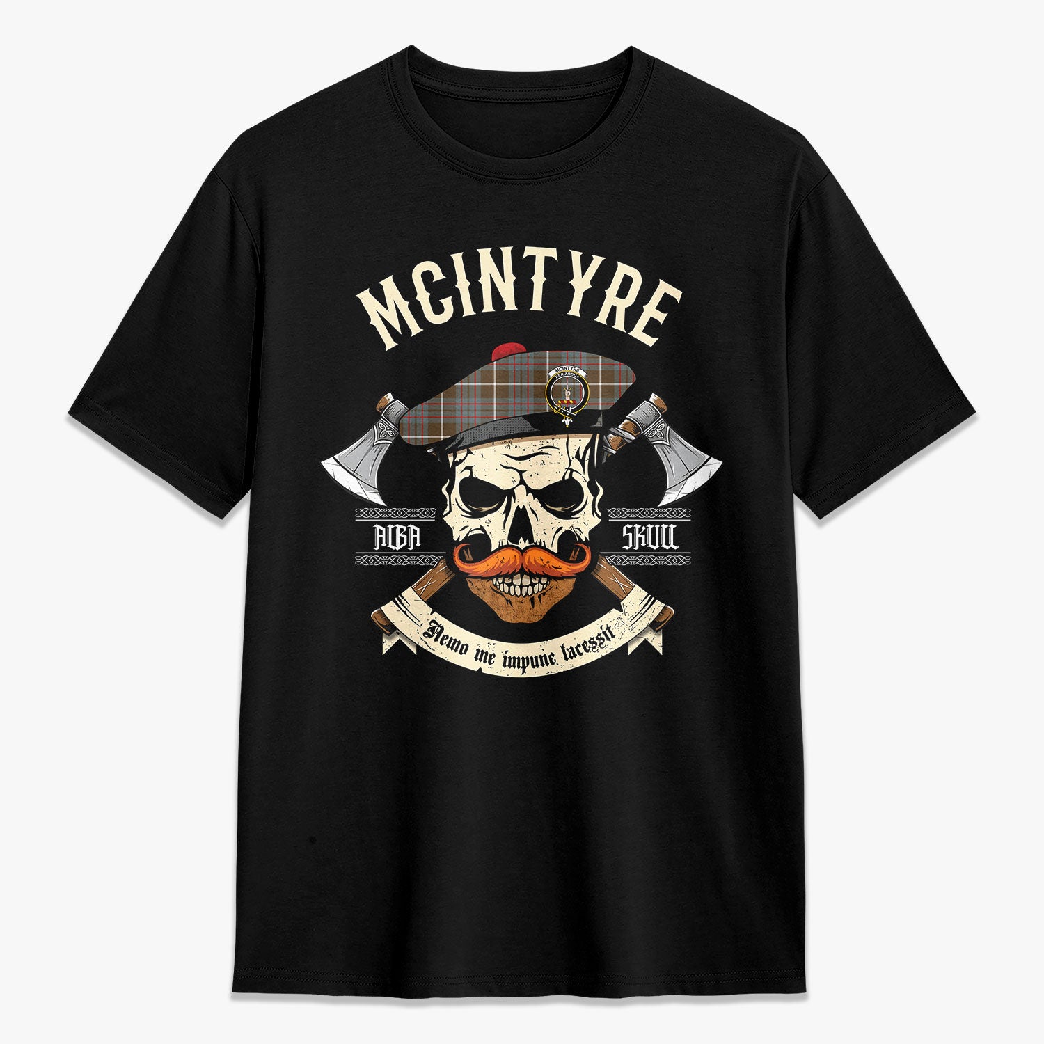 McIntyre Hunting Weathered Tartan Crest 2D T-shirt - Alba Skull Style,