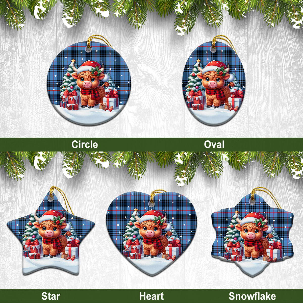 McKay Blue Tartan Christmas Ceramic Ornament - Highland Cow Winter Style