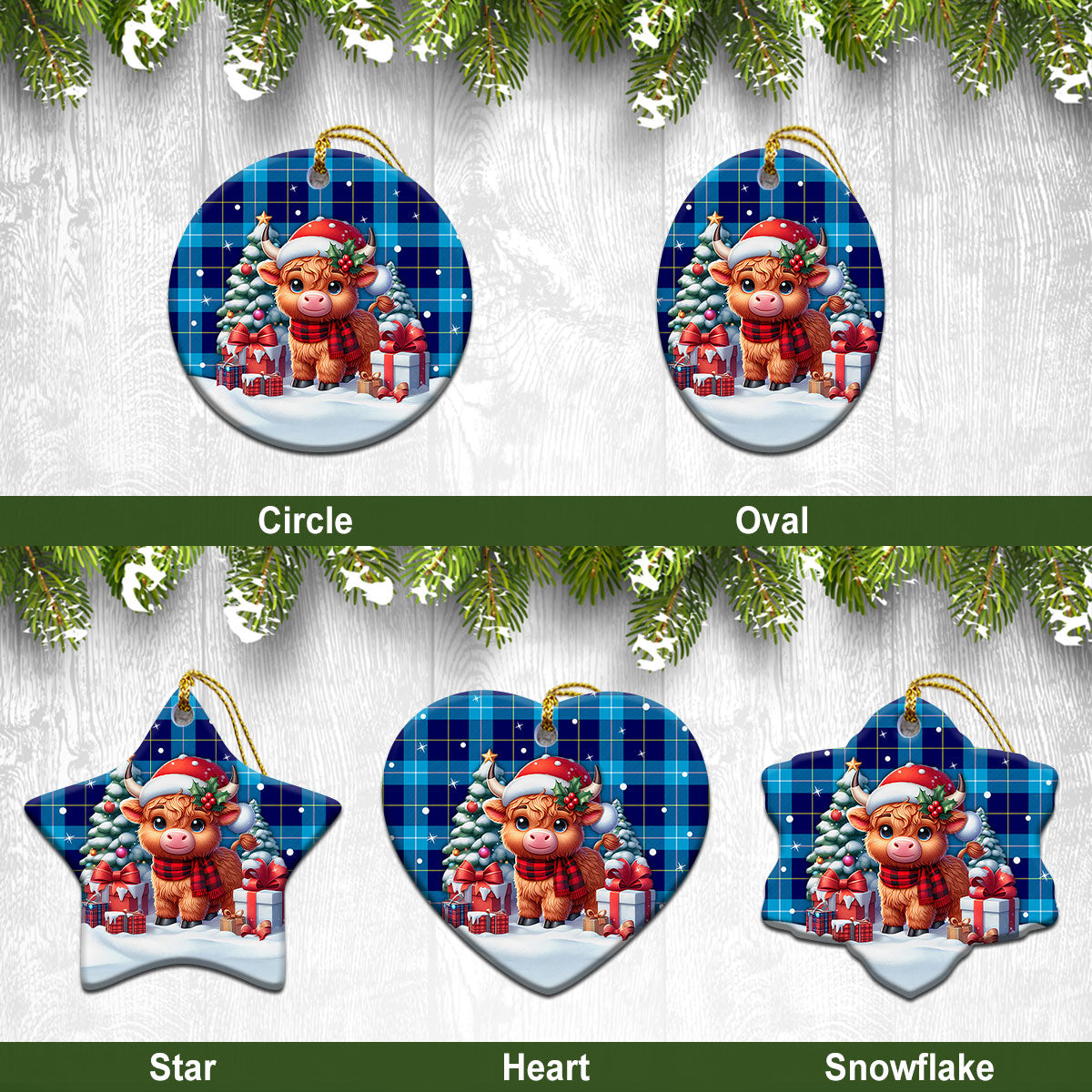 McKerrell Tartan Christmas Ceramic Ornament - Highland Cow Winter Style