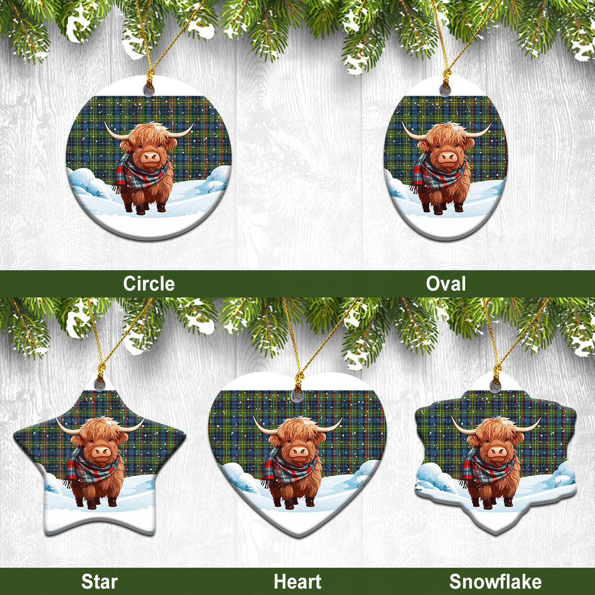 McLellan Ancient Tartan Christmas Ceramic Ornament - Highland Cows Snow Style