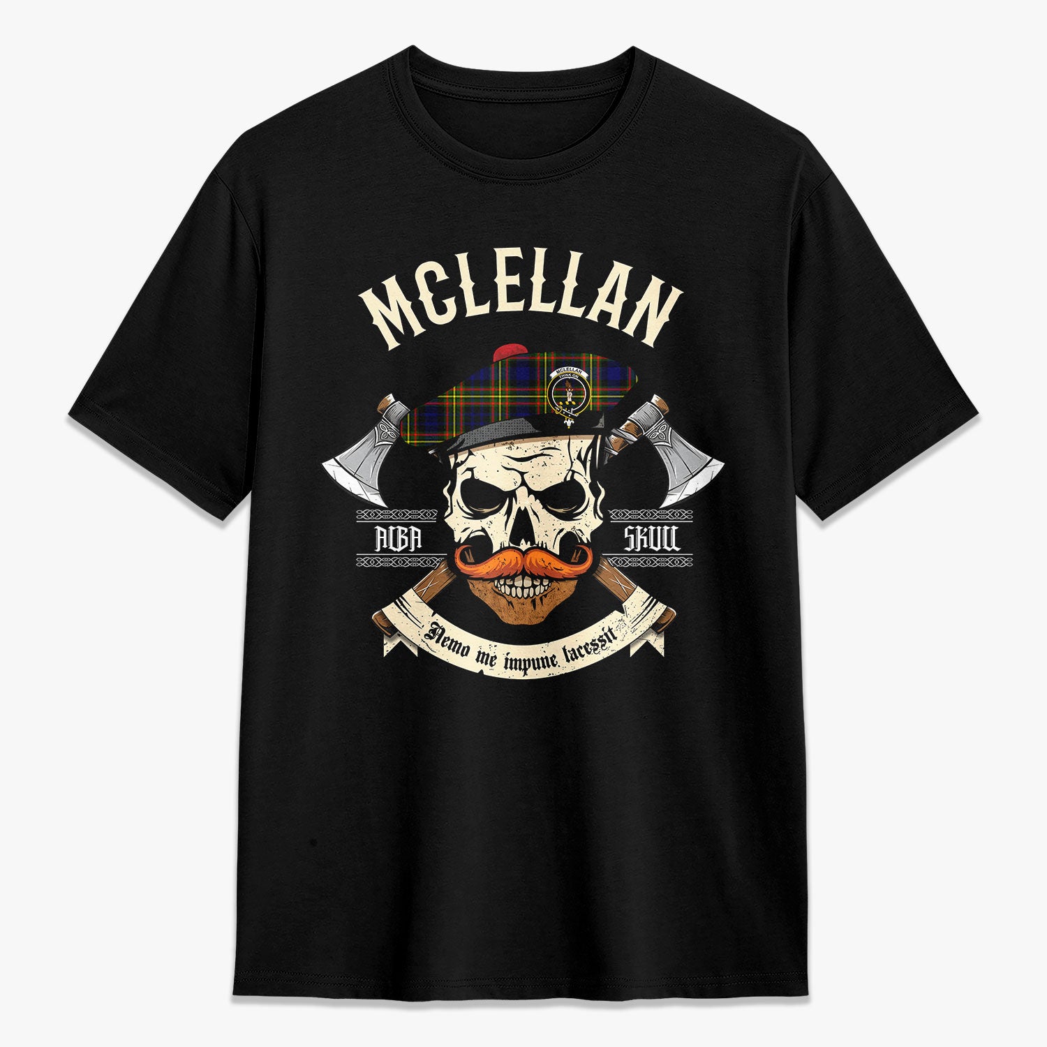 McLellan Modern Tartan Crest 2D T-shirt - Alba Skull Style,