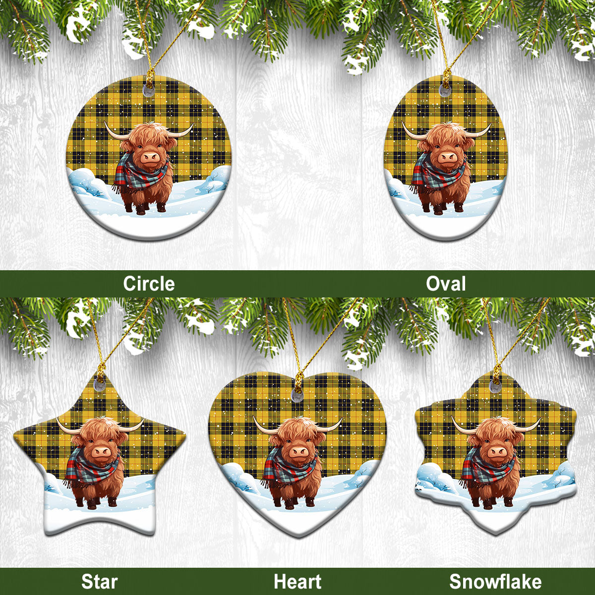 McLeod of Lewis Ancient Tartan Christmas Ceramic Ornament - Highland Cows Snow Style