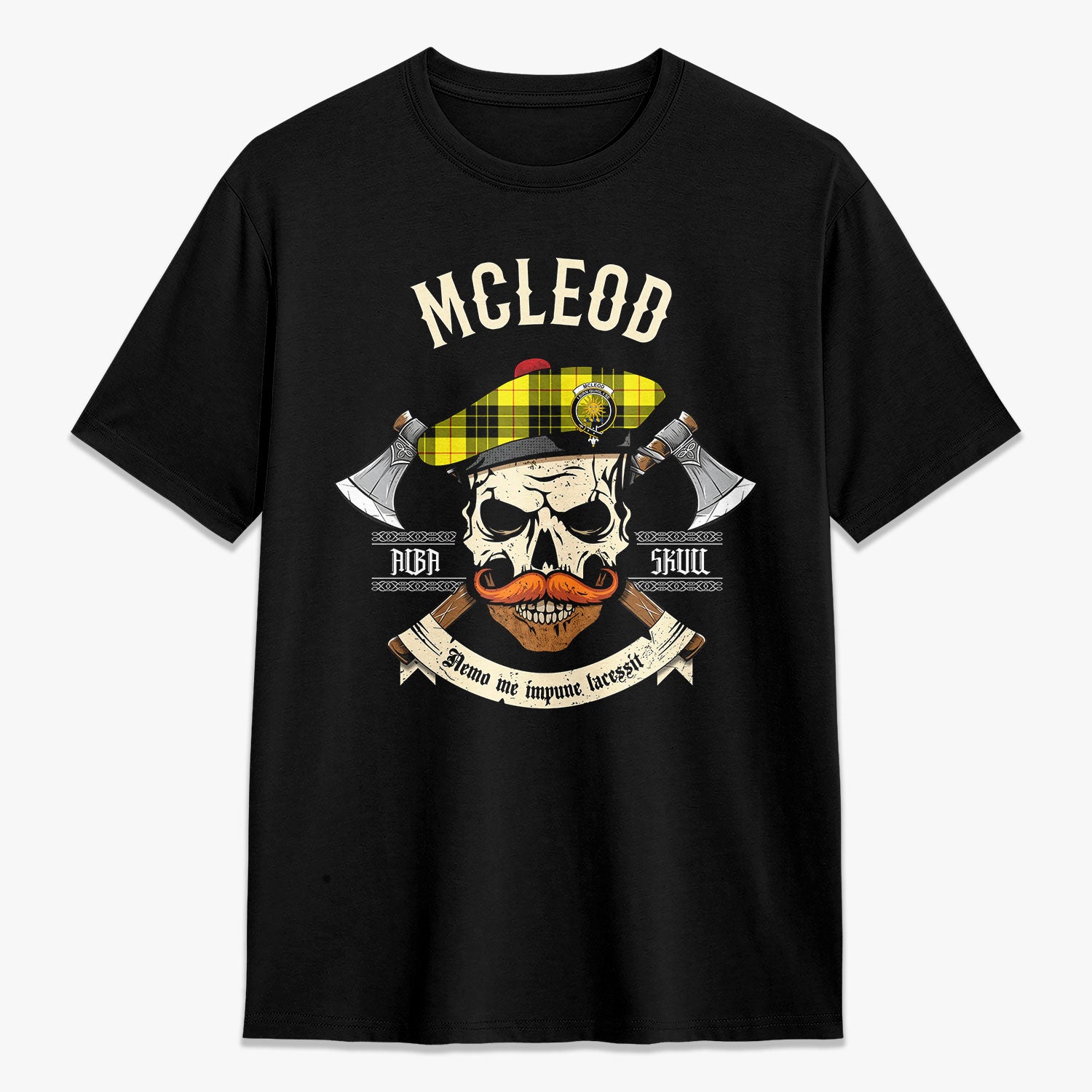 McLeod of Lewis Modern Tartan Crest 2D T-shirt - Alba Skull Style,