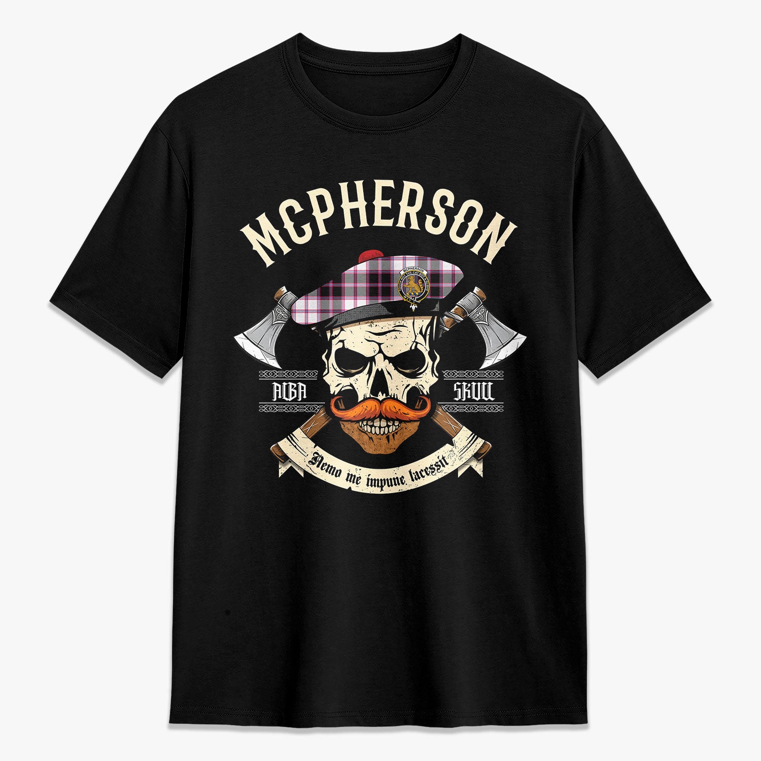 McPherson Hunting Modern Tartan Crest 2D T-shirt - Alba Skull Style,