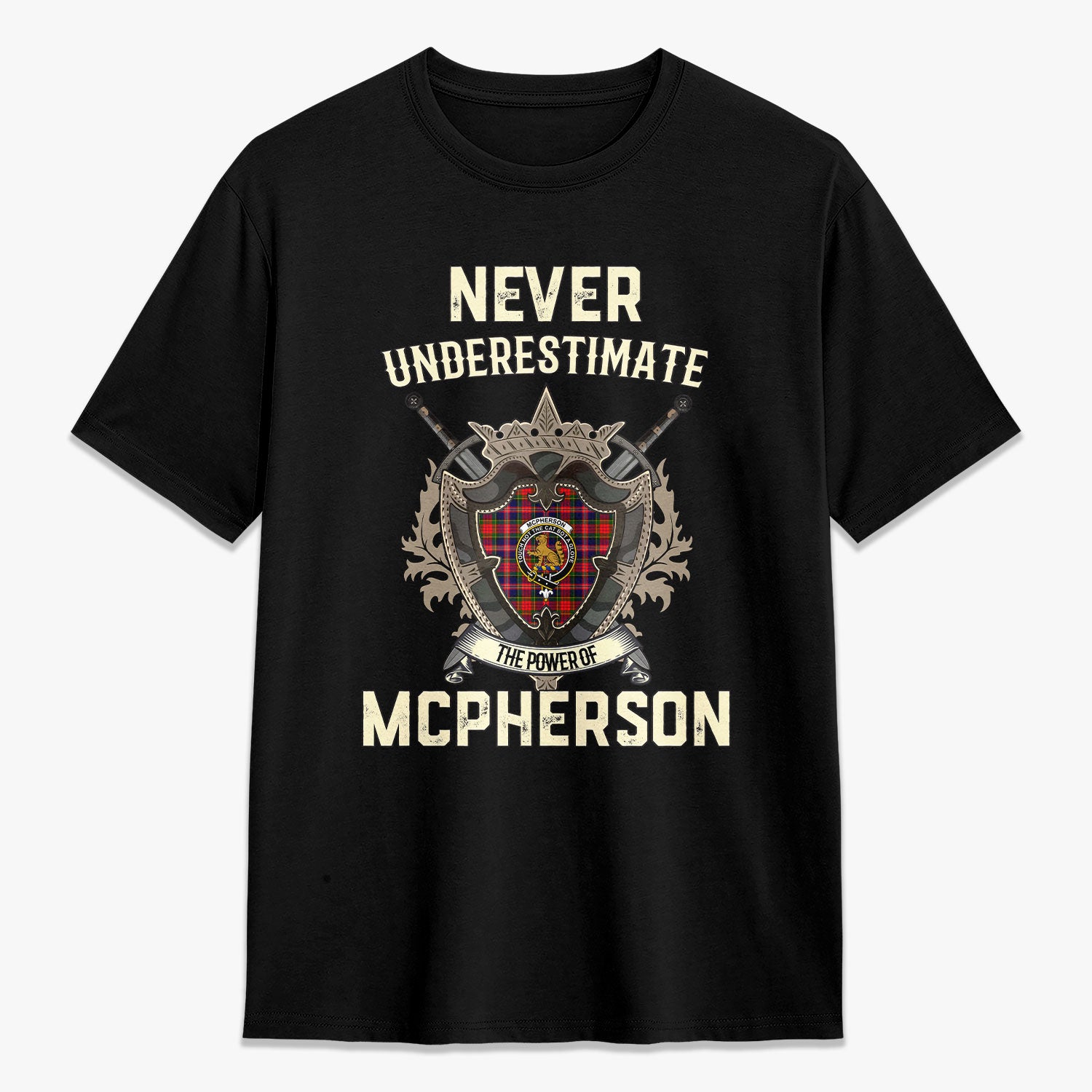 McPherson Modern Tartan Crest 2D T-shirt - Never Underestimate Style