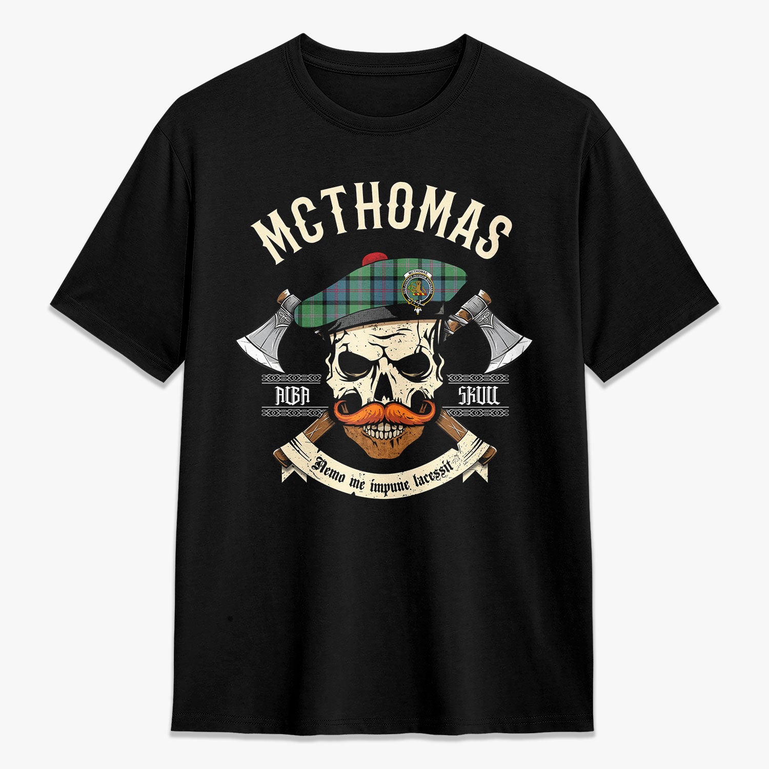 McThomas Ancient Tartan Crest 2D T-shirt - Alba Skull Style,