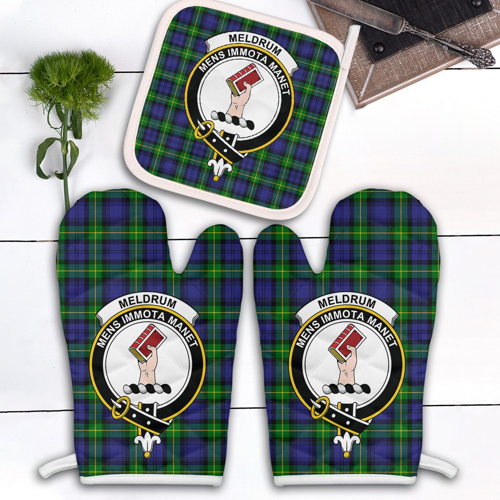 Meldrum Tartan Crest Oven Mitt And Pot Holder (2 Oven Mitts + 1 Pot Holder)