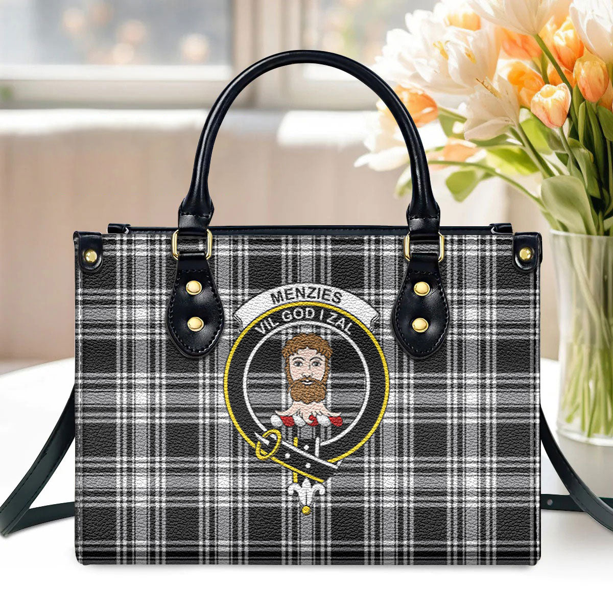Menzies Black - White Modern Tartan Crest Leather Handbag