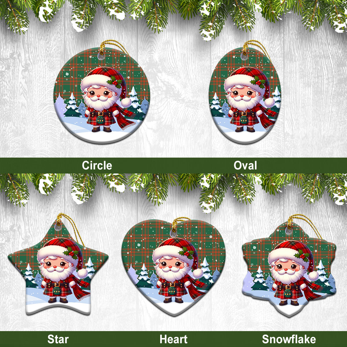 Menzies Green Ancient Tartan Christmas Ceramic Ornament - Santa Claus In Kilt Style