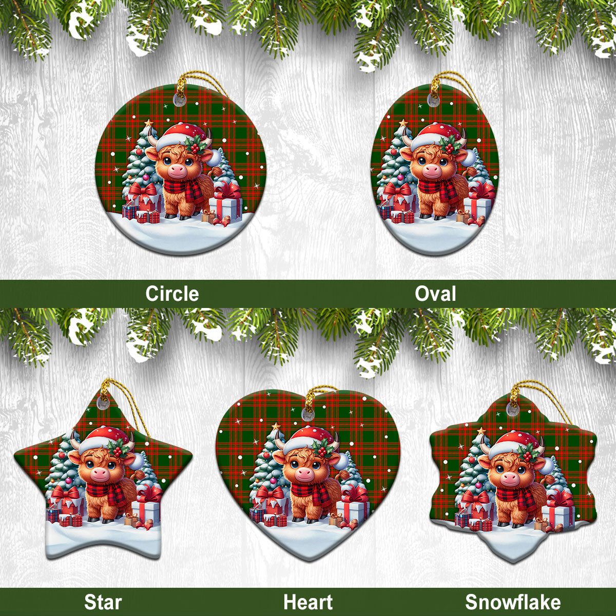 Menzies Green Modern Tartan Christmas Ceramic Ornament - Highland Cow Winter Style