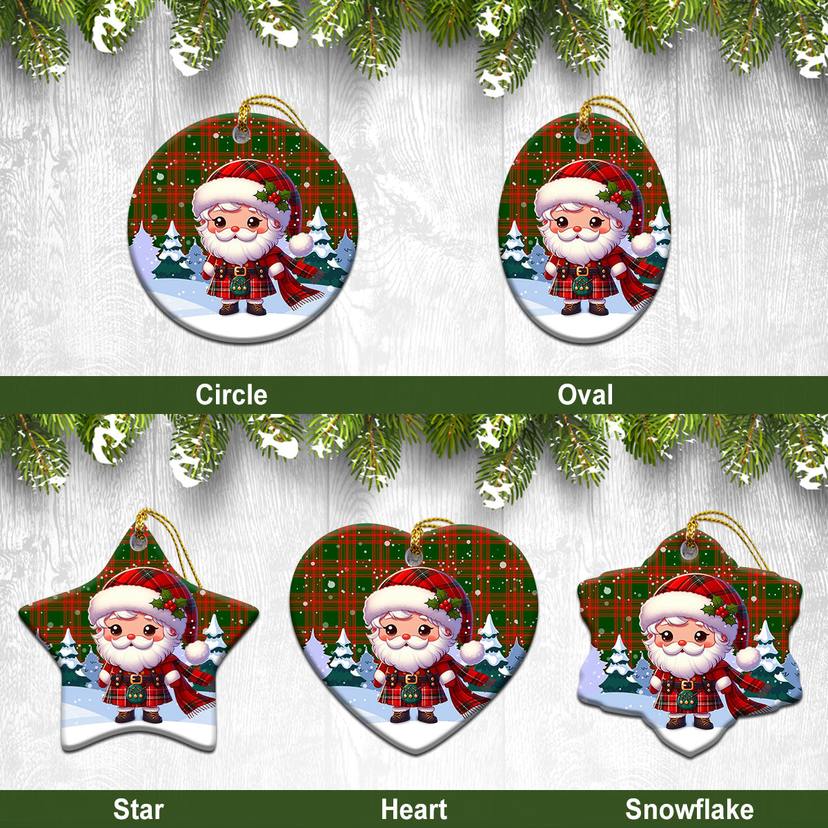 Menzies Green Modern Tartan Christmas Ceramic Ornament - Santa Claus In Kilt Style