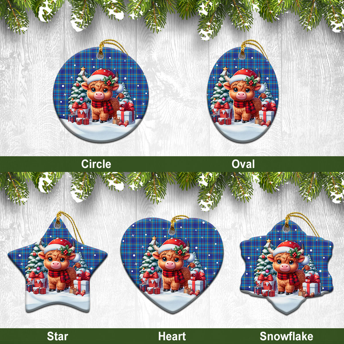 Mercer Modern Tartan Christmas Ceramic Ornament - Highland Cow Winter Style