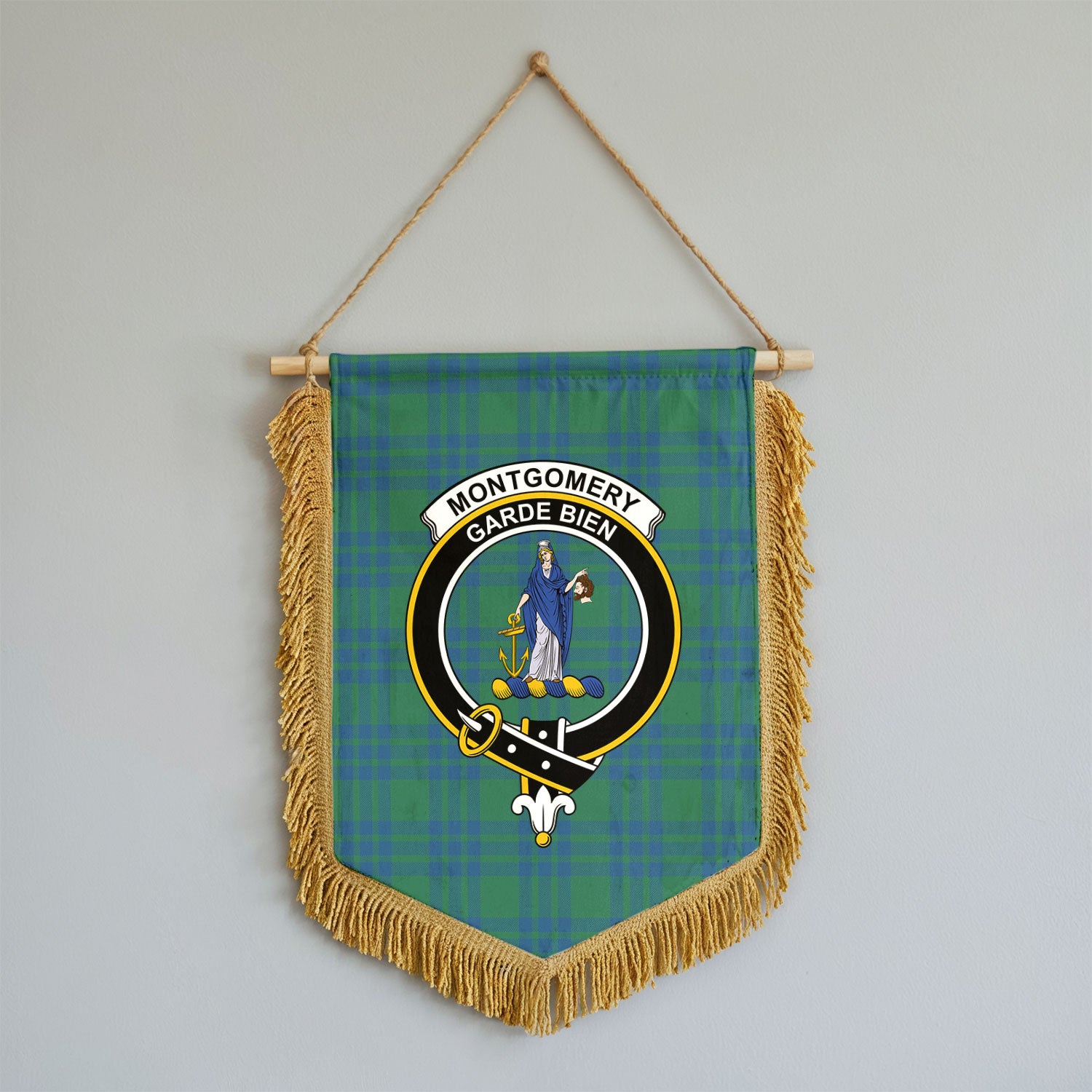 Montgomery Ancient Tartan Crest Wall Hanging Banner - Wood Pole