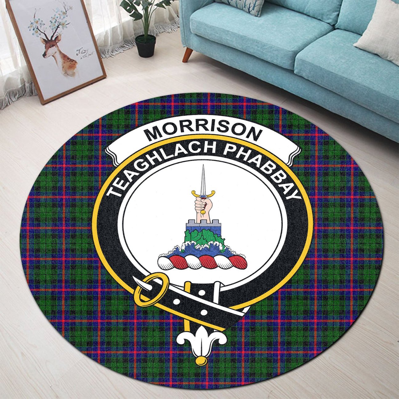 Morrison Modern Tartan Crest Round Rug