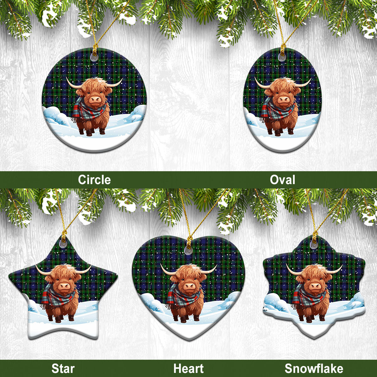Mowat Modern Tartan Christmas Ceramic Ornament - Highland Cows Snow Style