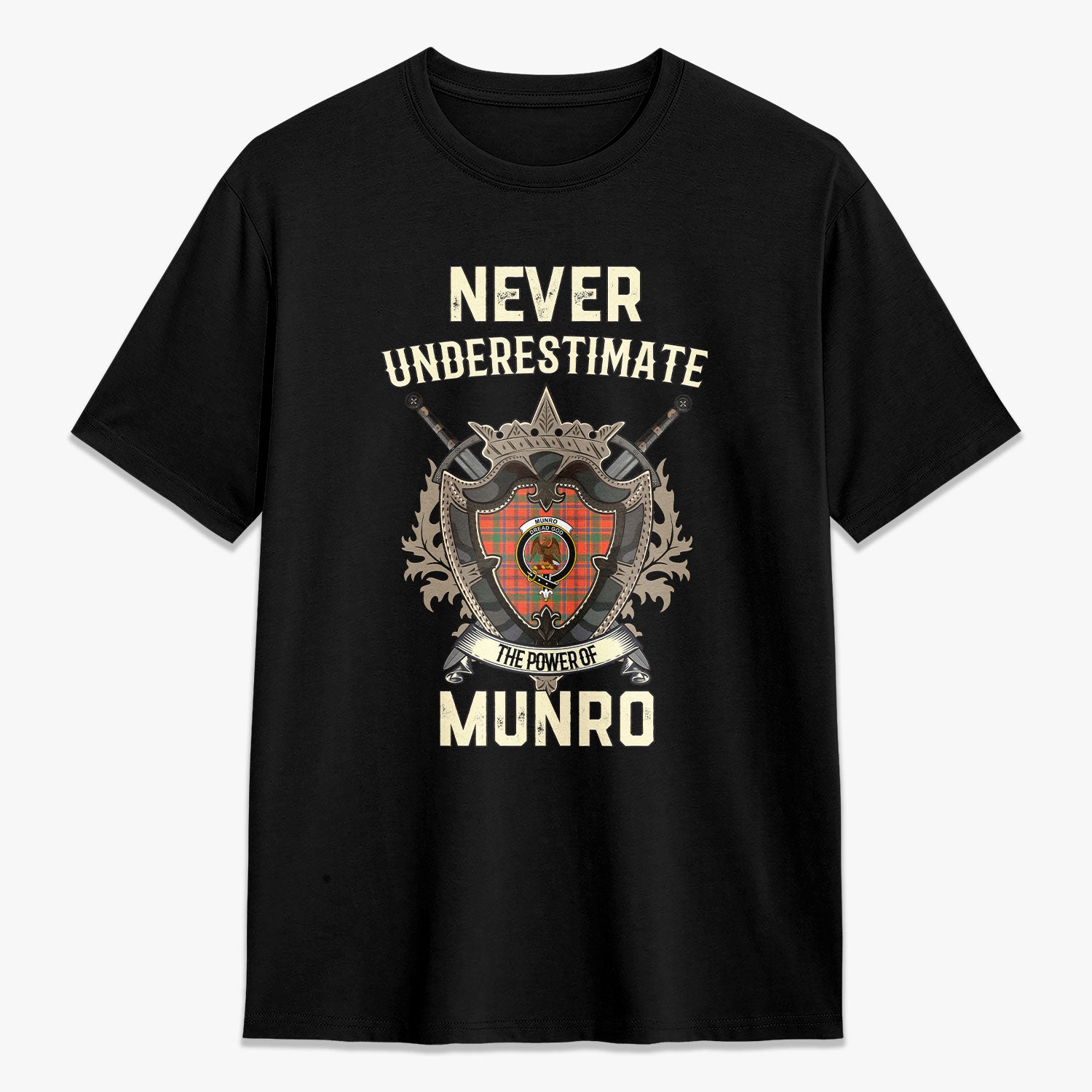 Munro Ancient Tartan Crest 2D T-shirt - Never Underestimate Style
