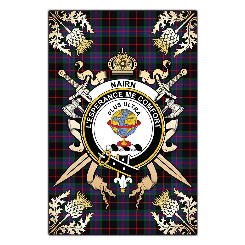 Nairn Tartan Crest Black Garden Flag - Gold Thistle Style