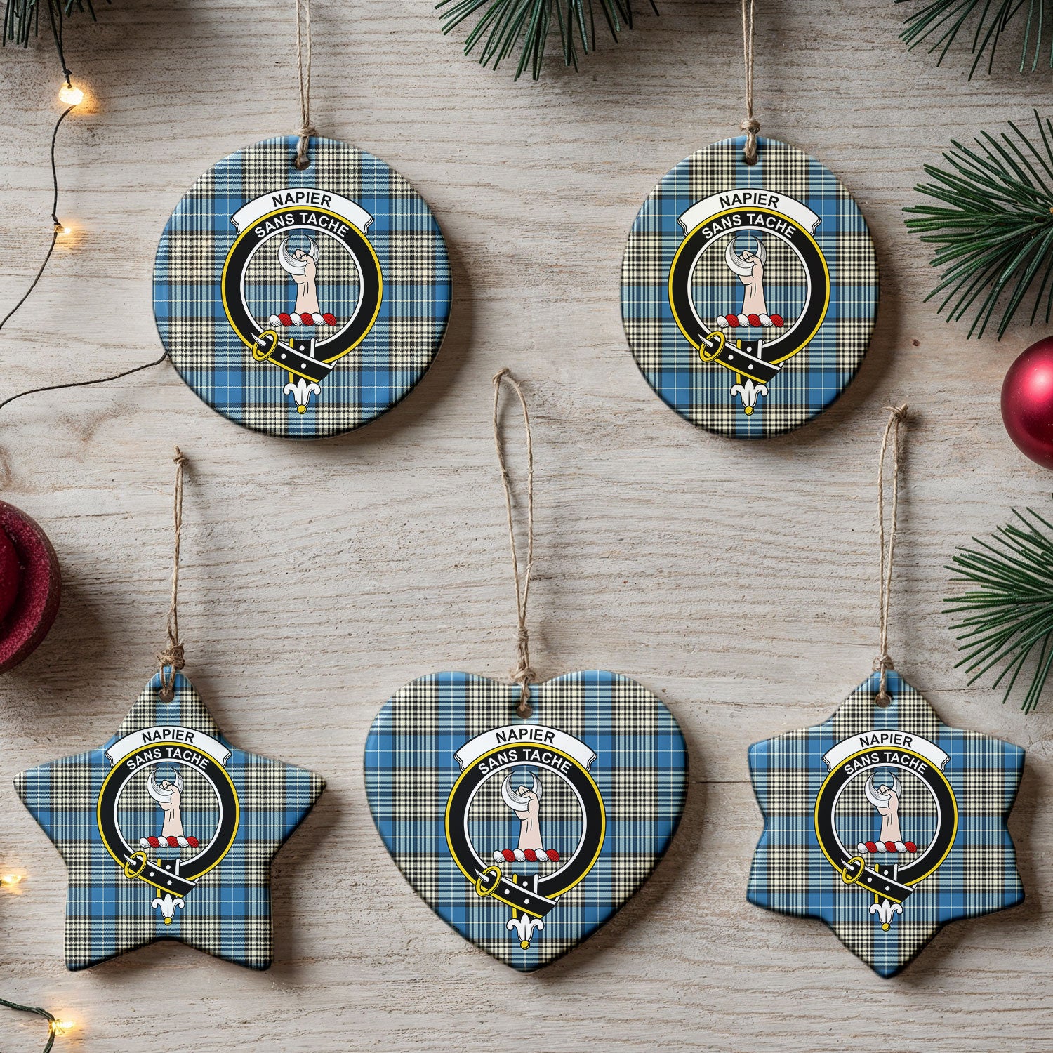 Napier Ancient Tartan Crest Christmas Ceramic Ornament