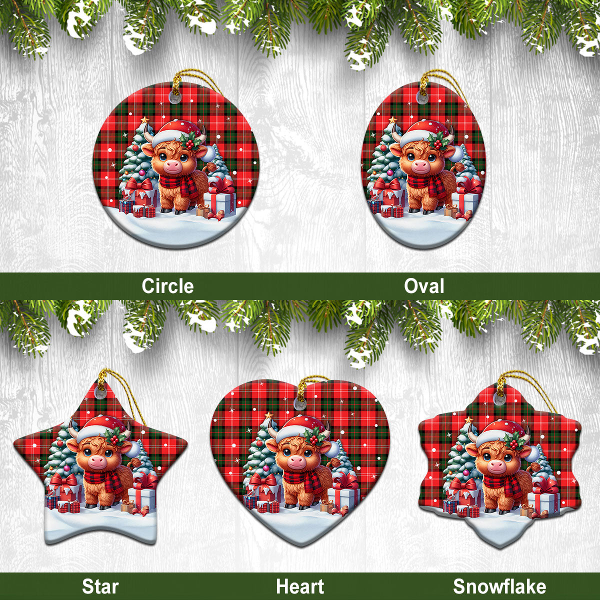 Nesbitt Modern Tartan Christmas Ceramic Ornament - Highland Cow Winter Style