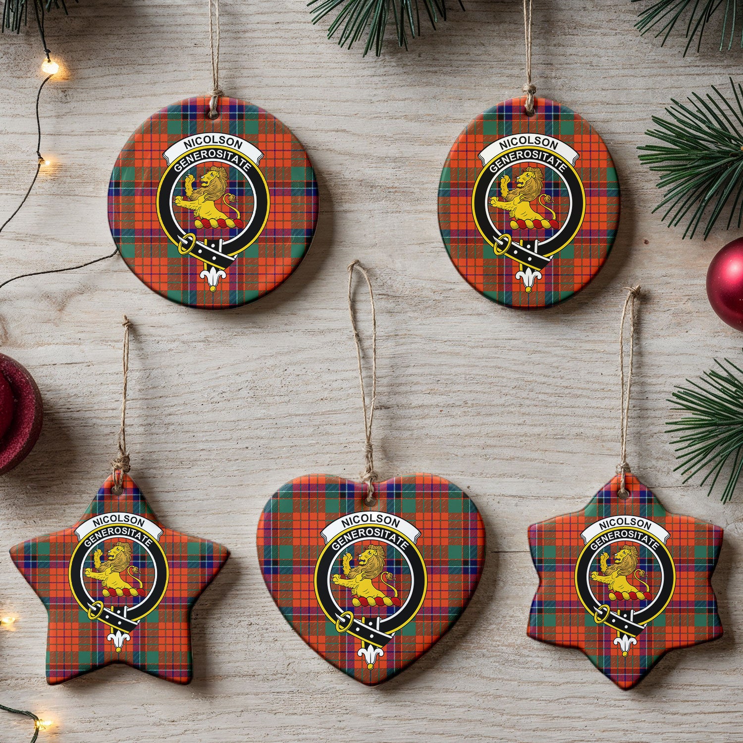 Nicolson Ancient Old Tartan Crest Christmas Ceramic Ornament