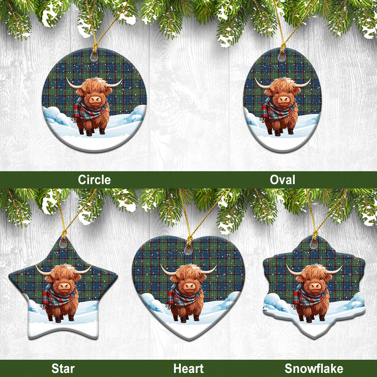 Nicolson Hunting Ancient Tartan Christmas Ceramic Ornament - Highland Cows Snow Style