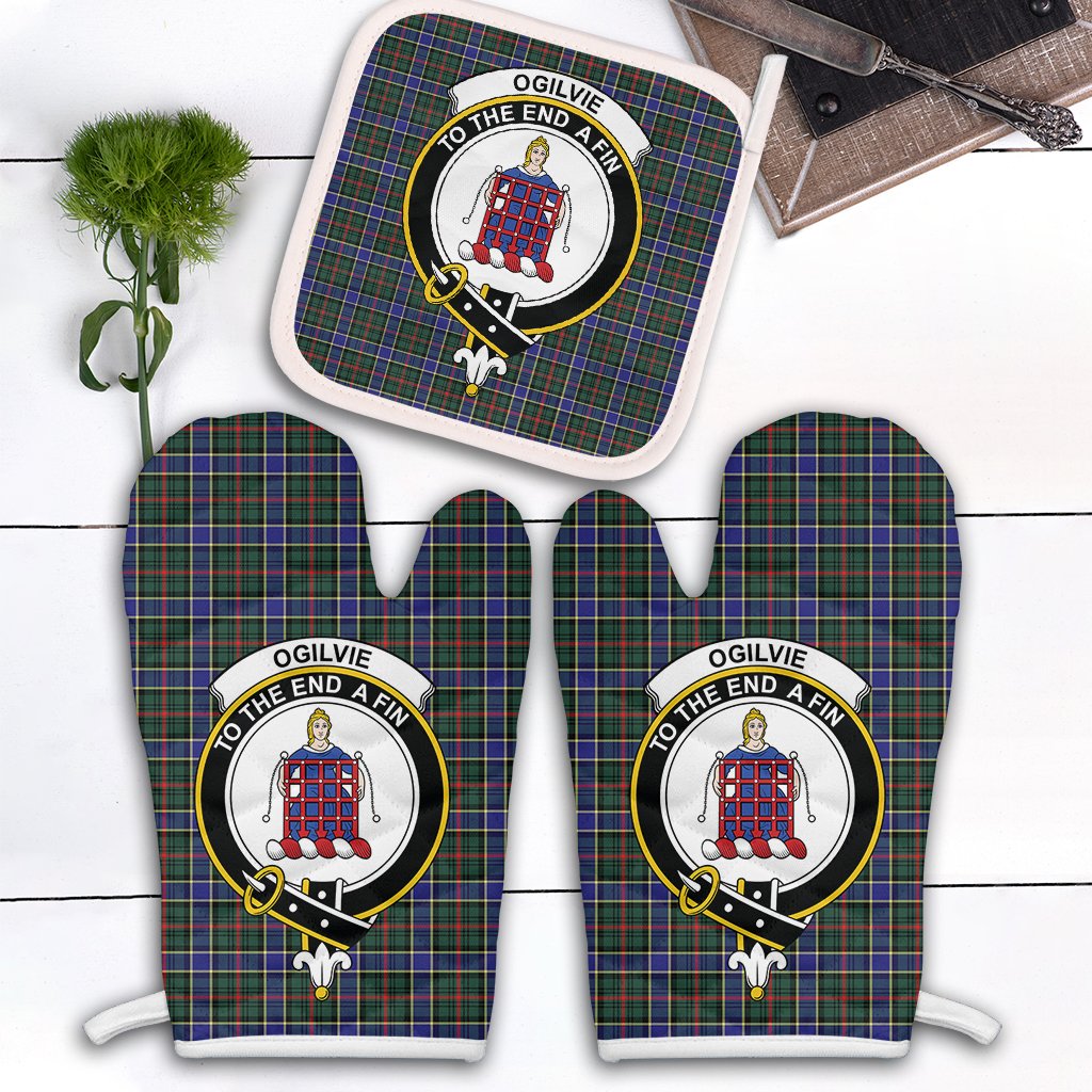 Ogilvie Hunting Modern Tartan Crest Oven Mitt And Pot Holder (2 Oven Mitts + 1 Pot Holder)