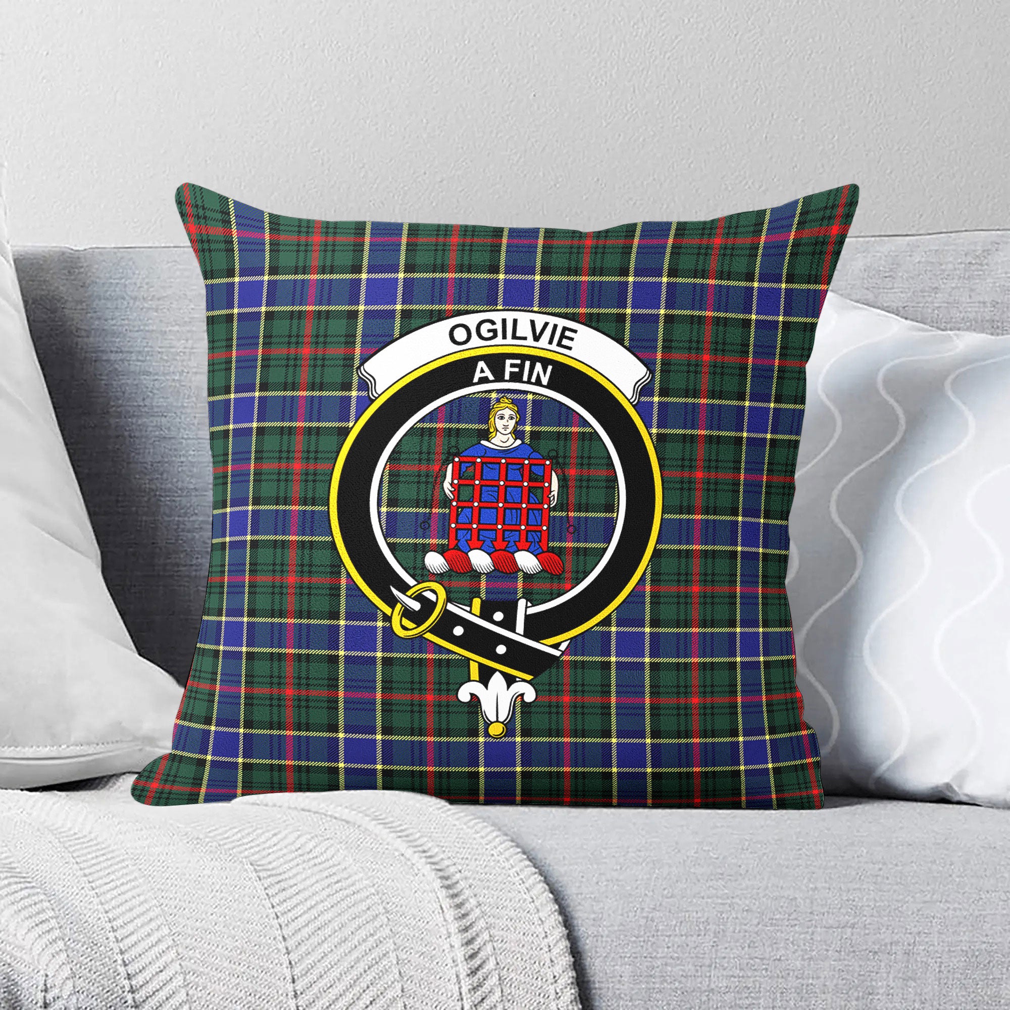 Ogilvie Hunting Modern Tartan Crest Pillow Cover