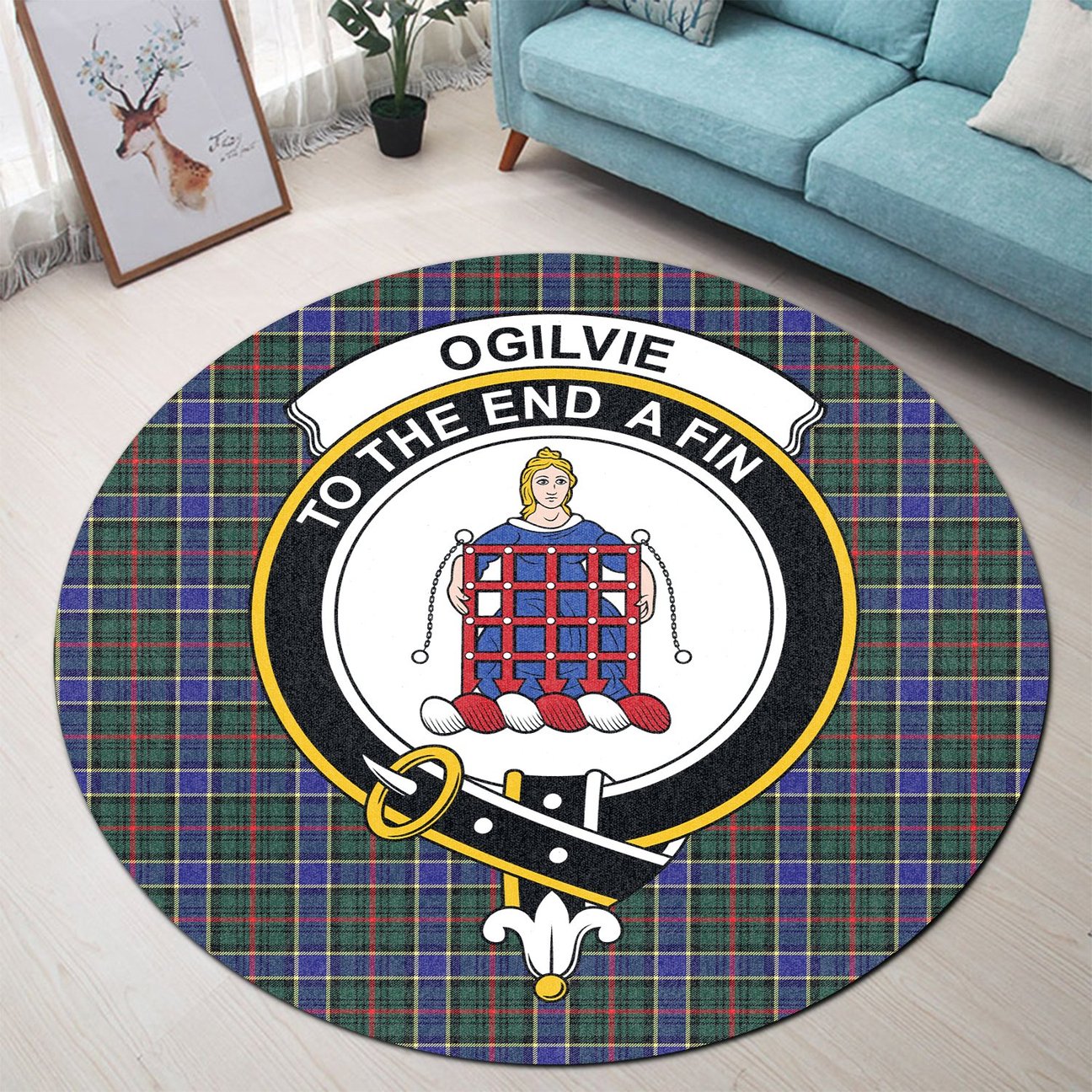 Ogilvie Hunting Modern Tartan Crest Round Rug