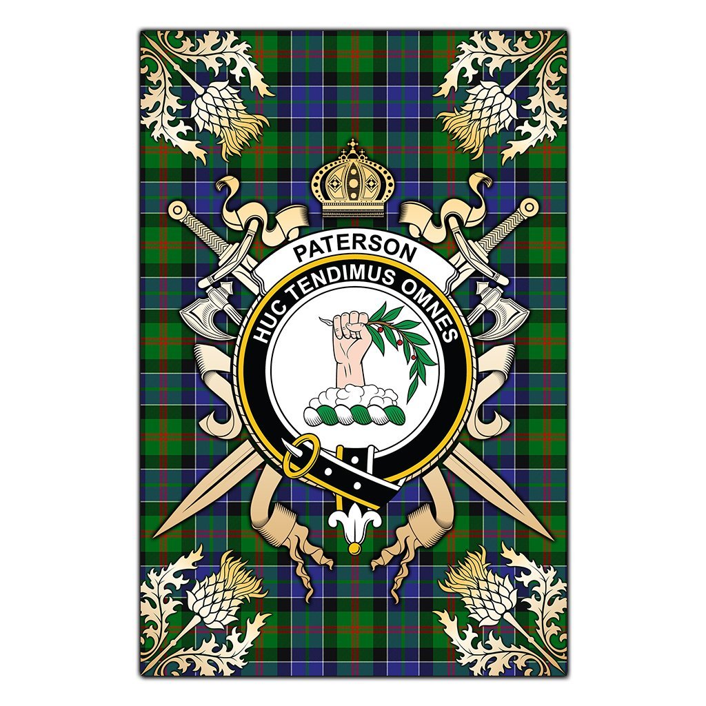 Paterson Tartan Crest Black Garden Flag - Gold Thistle Style