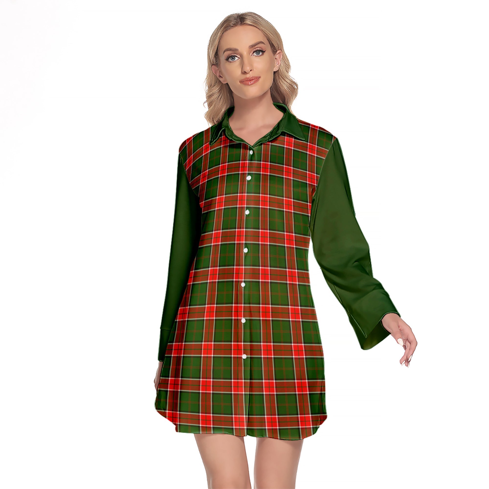Pollock Modern Tartan Women's Lapel Shirt Dress With Long Sleeve