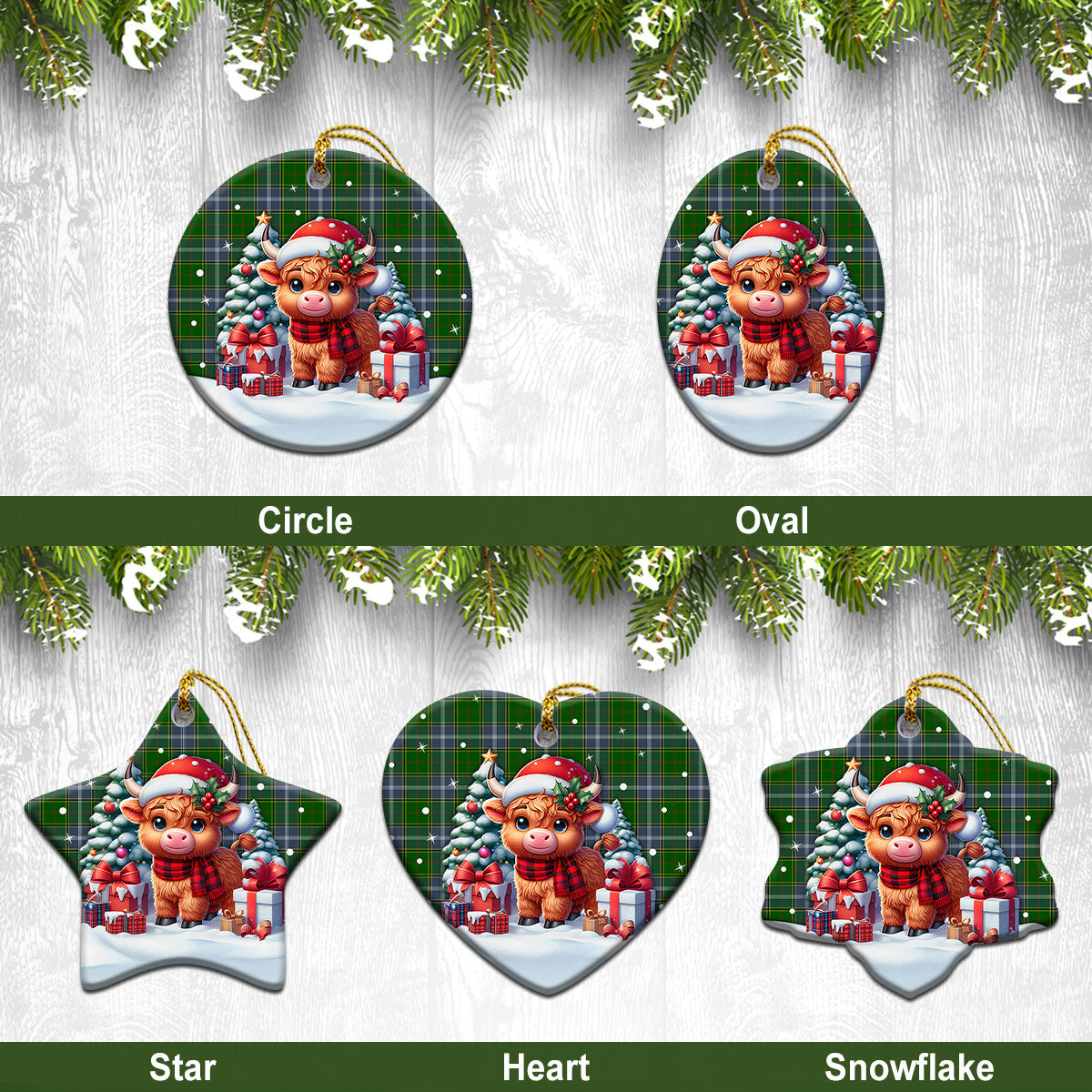 Pringle Tartan Christmas Ceramic Ornament - Highland Cow Winter Style