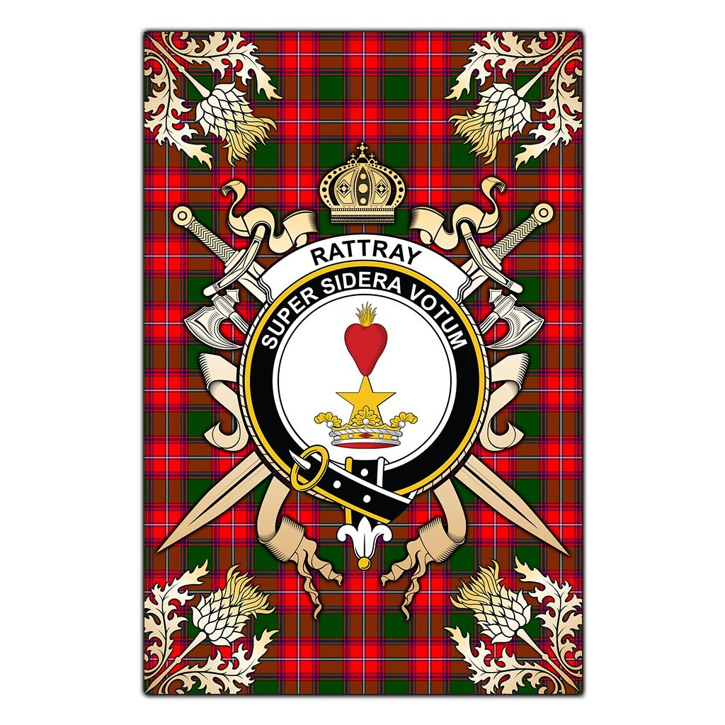 Rattray Modern Tartan Crest Black Garden Flag - Gold Thistle Style