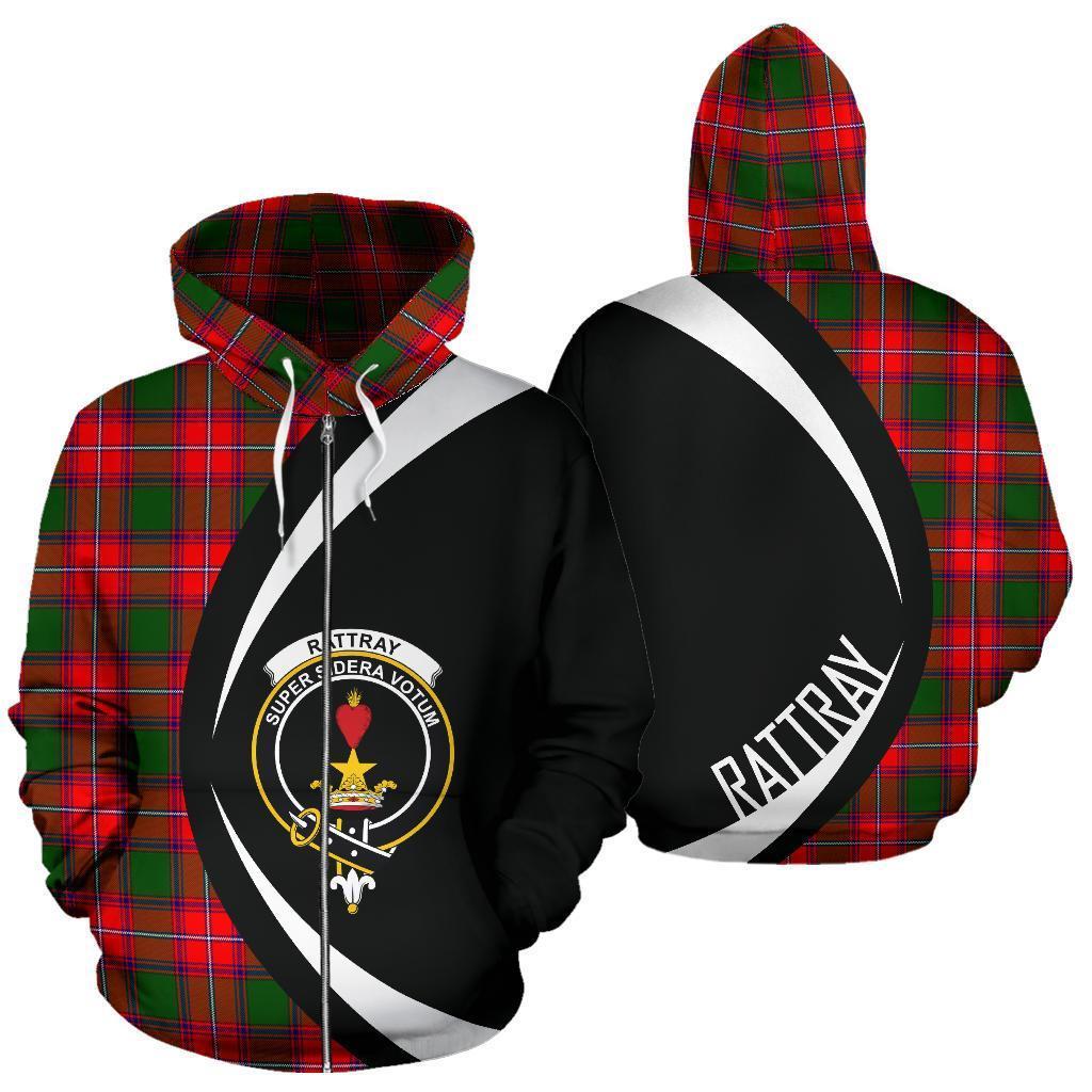 Rattray Modern Tartan Crest Zipper Hoodie - Circle Style
