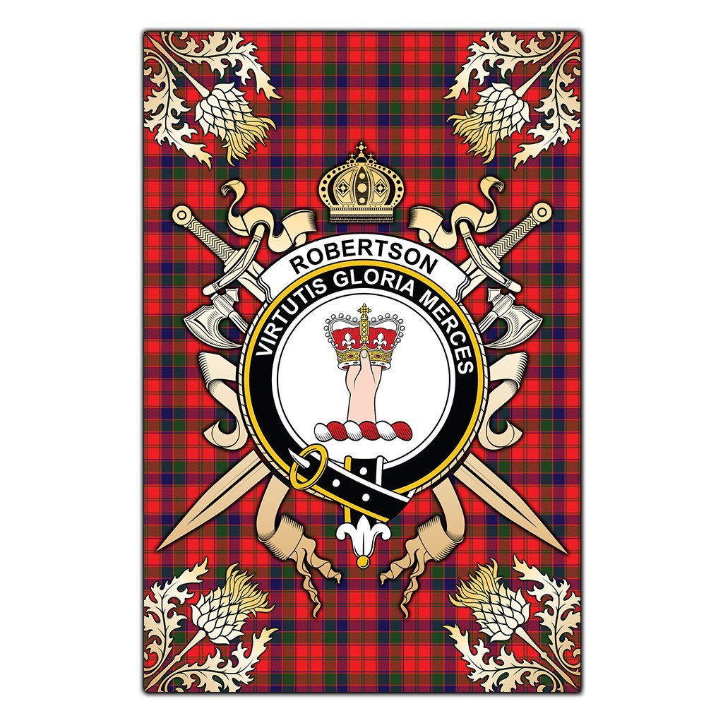 Robertson Modern Tartan Crest Black Garden Flag - Gold Thistle Style